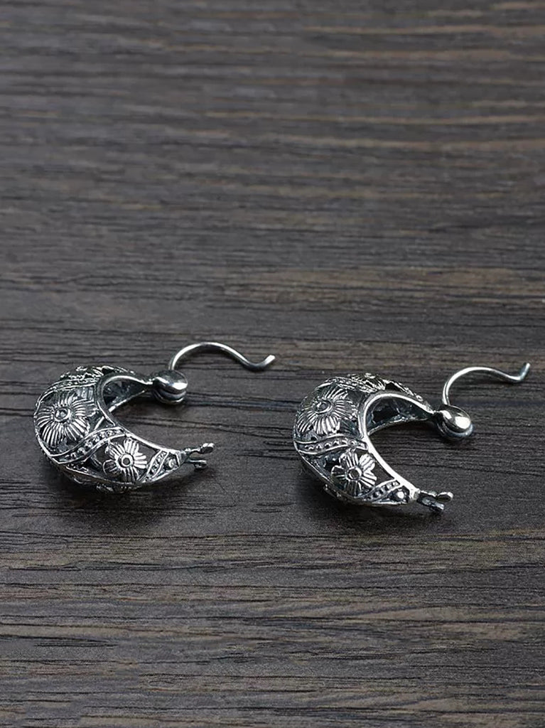 Boucles d'oreilles creuses vintage en argent S999 pour femmes