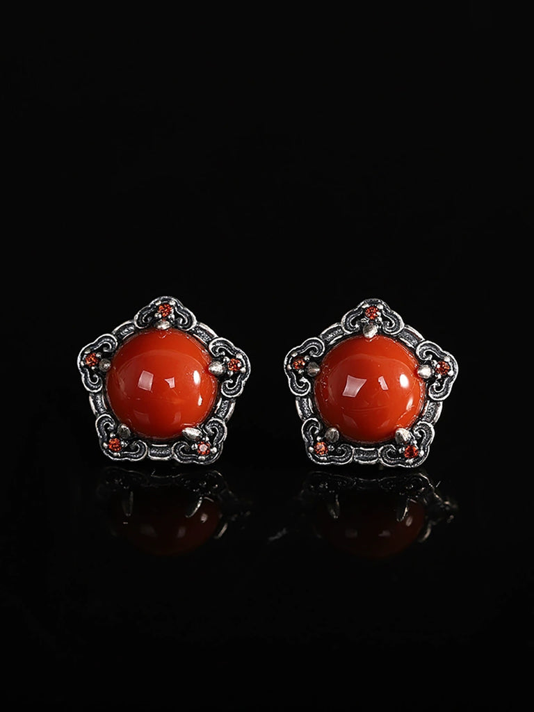 Boucles d'oreilles vintage pour femmes en argent S925 et agate rouge