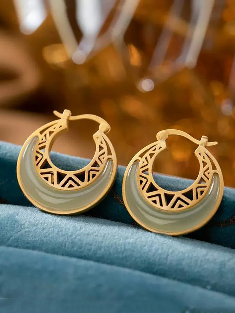 Boucles d'oreilles vintage en alliage de jade et lune pour femmes
