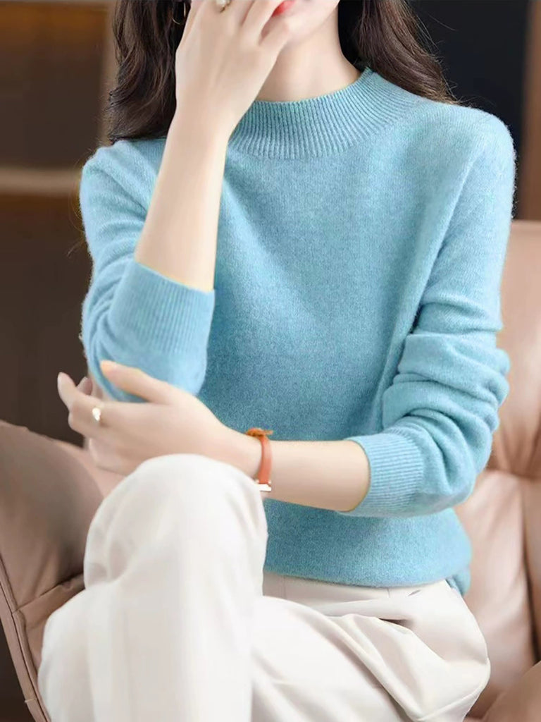 Pull col rond tricoté couleur pure pour femme, style artistique d'automne