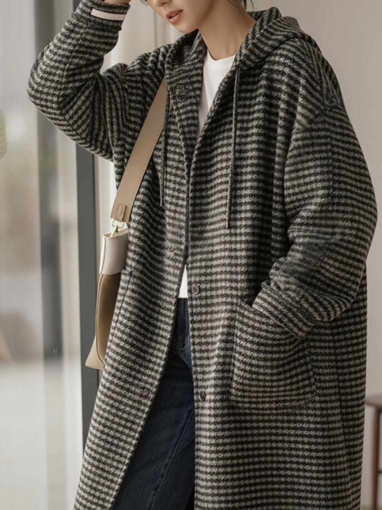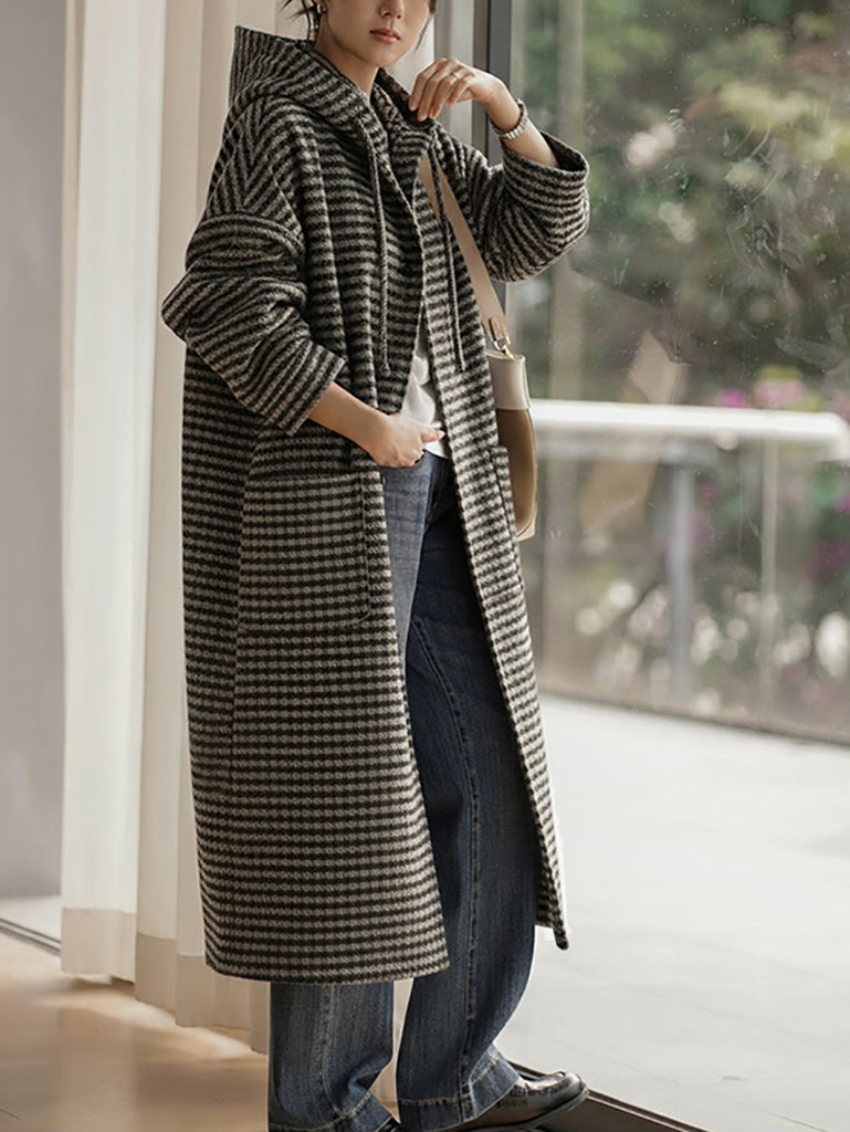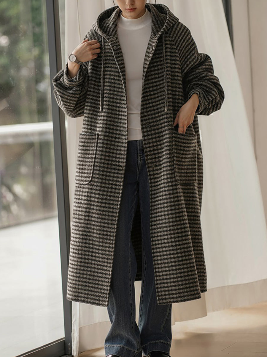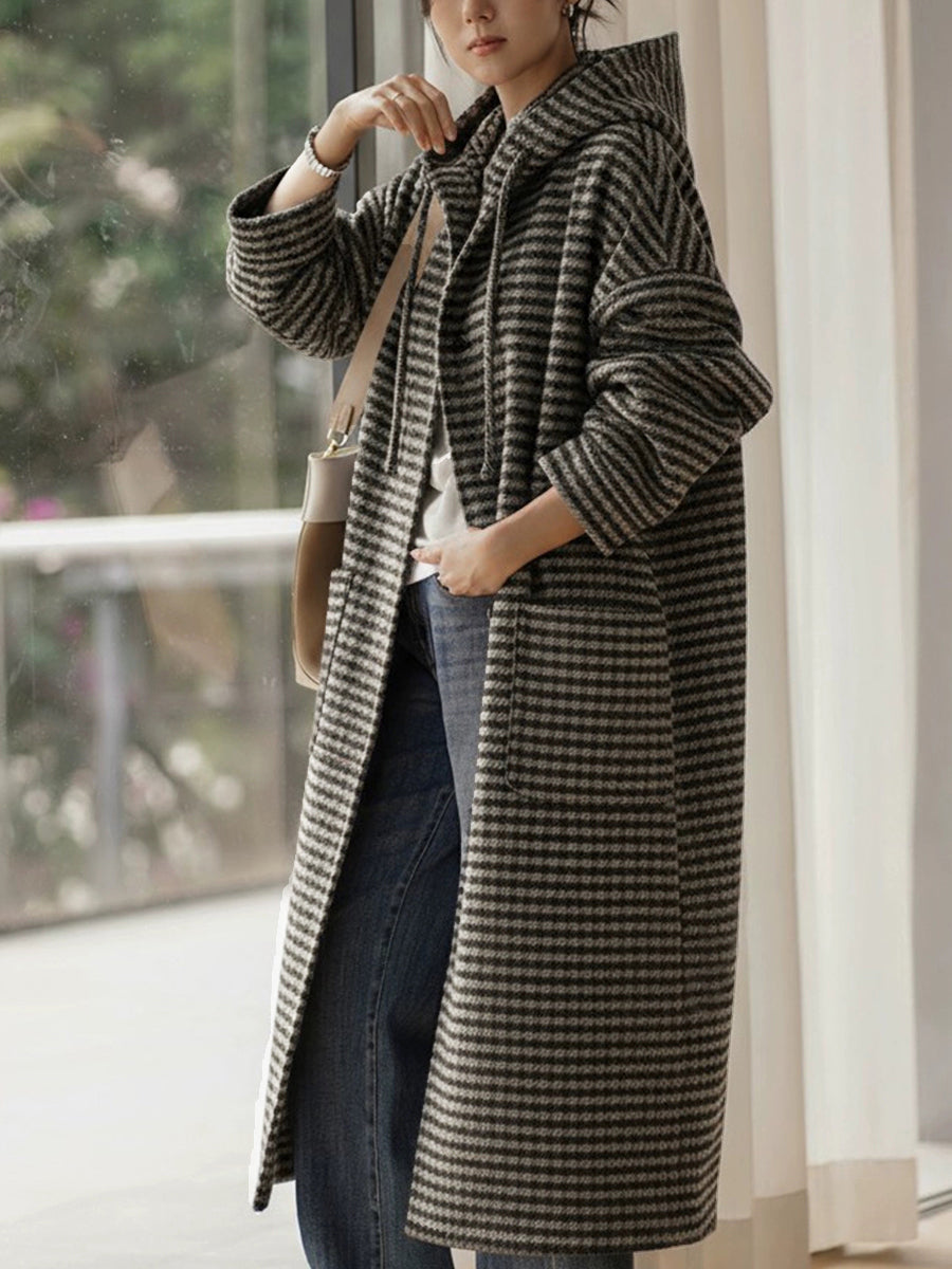 Manteau d'hiver vintage à rayures pour femme