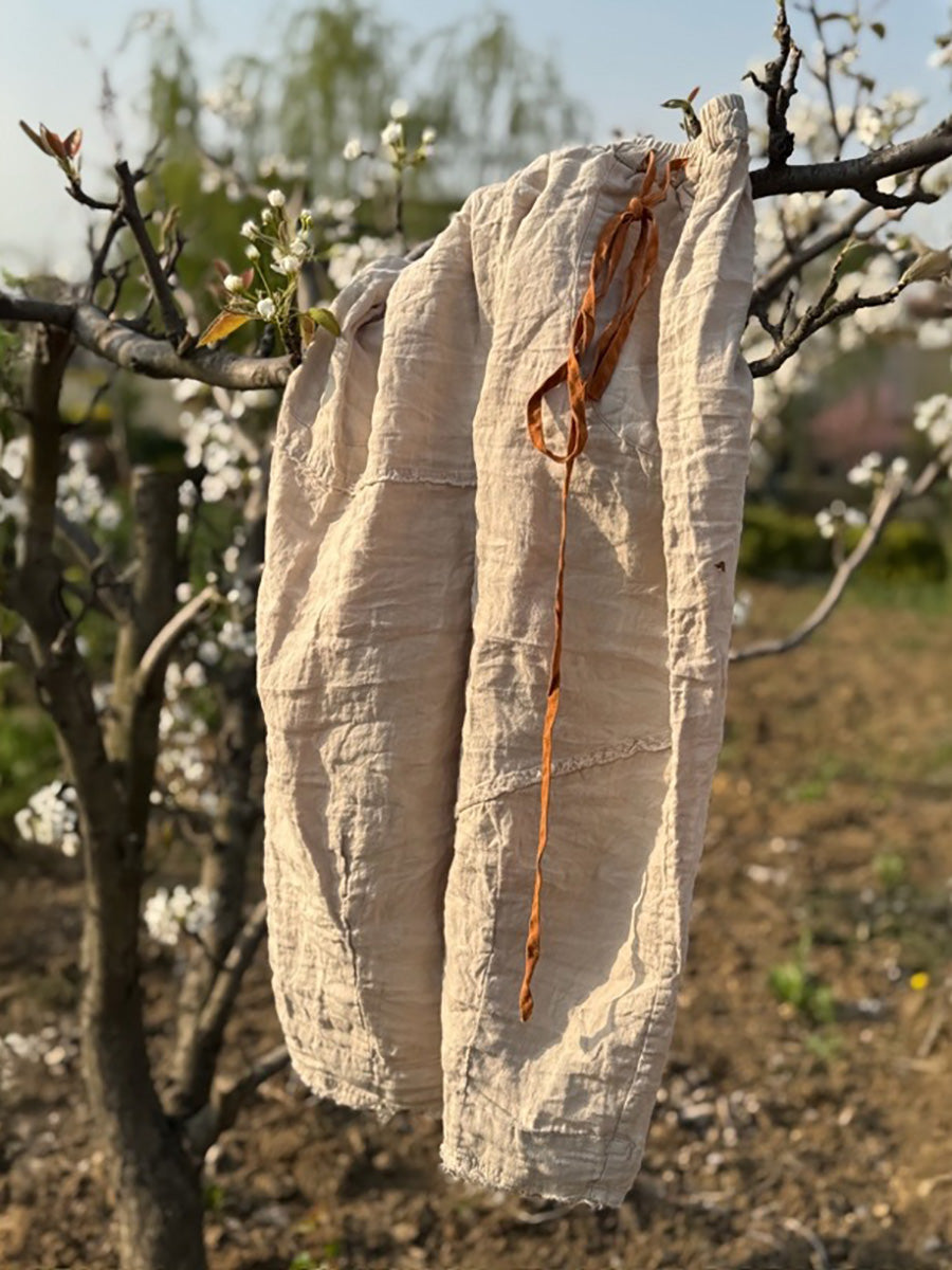 Pantalon large d'été pour femme, couleur pure, 100 % lin