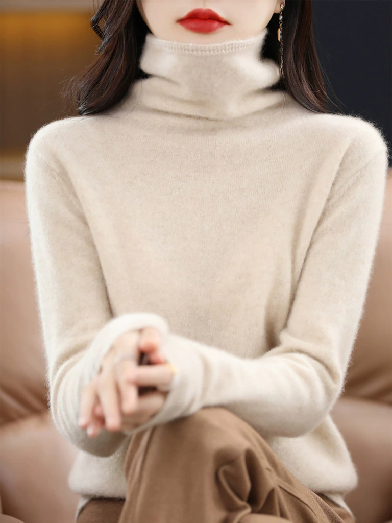 Women Autumn Casual Pure Color Turtleneck Sweater