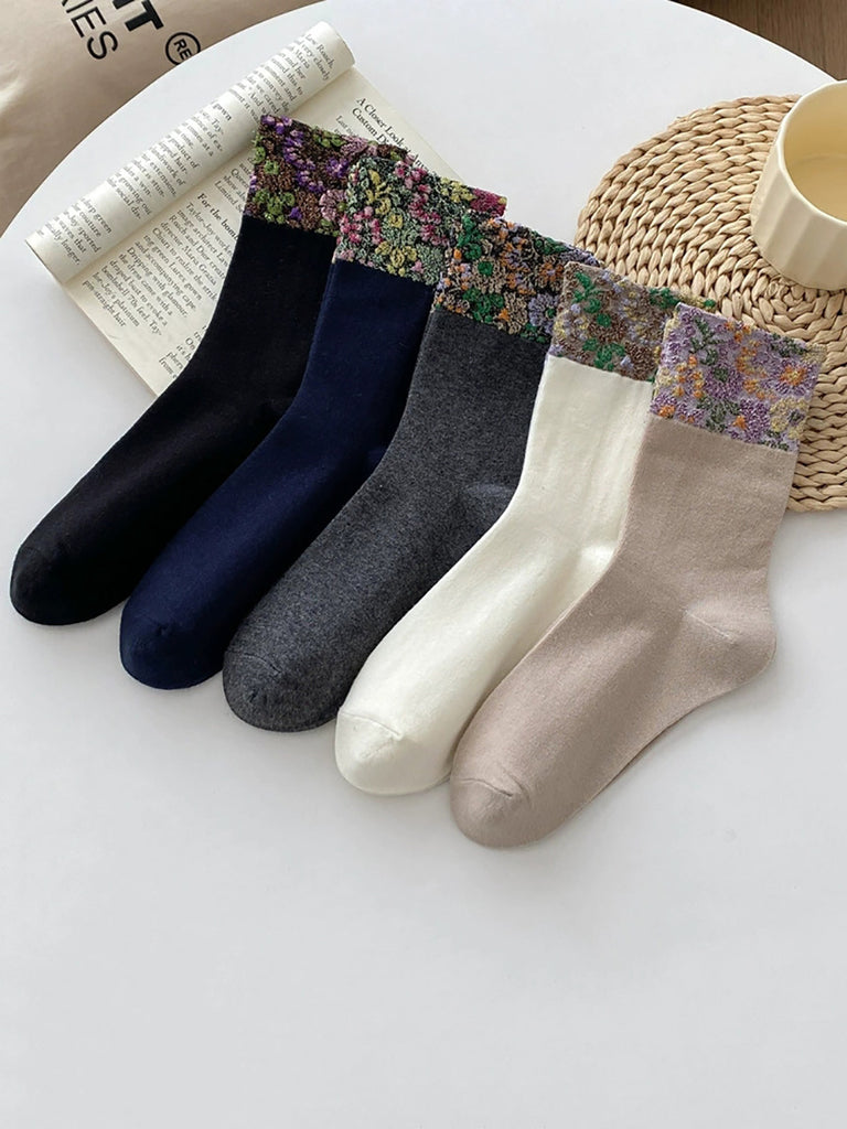 5 Pairs Women Vintage Winter Flower Jacquard Socks