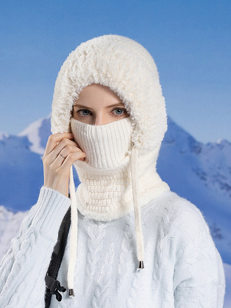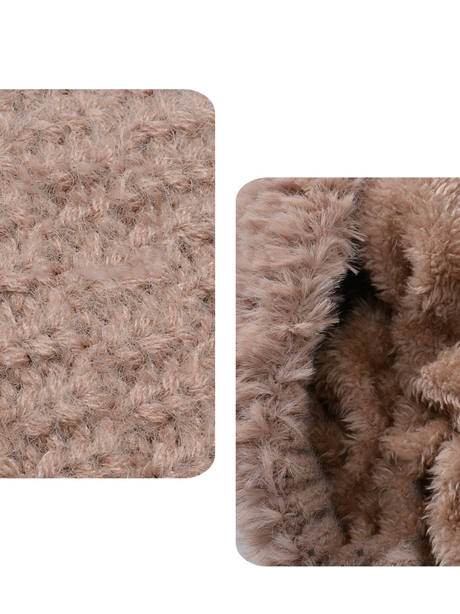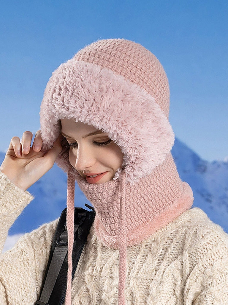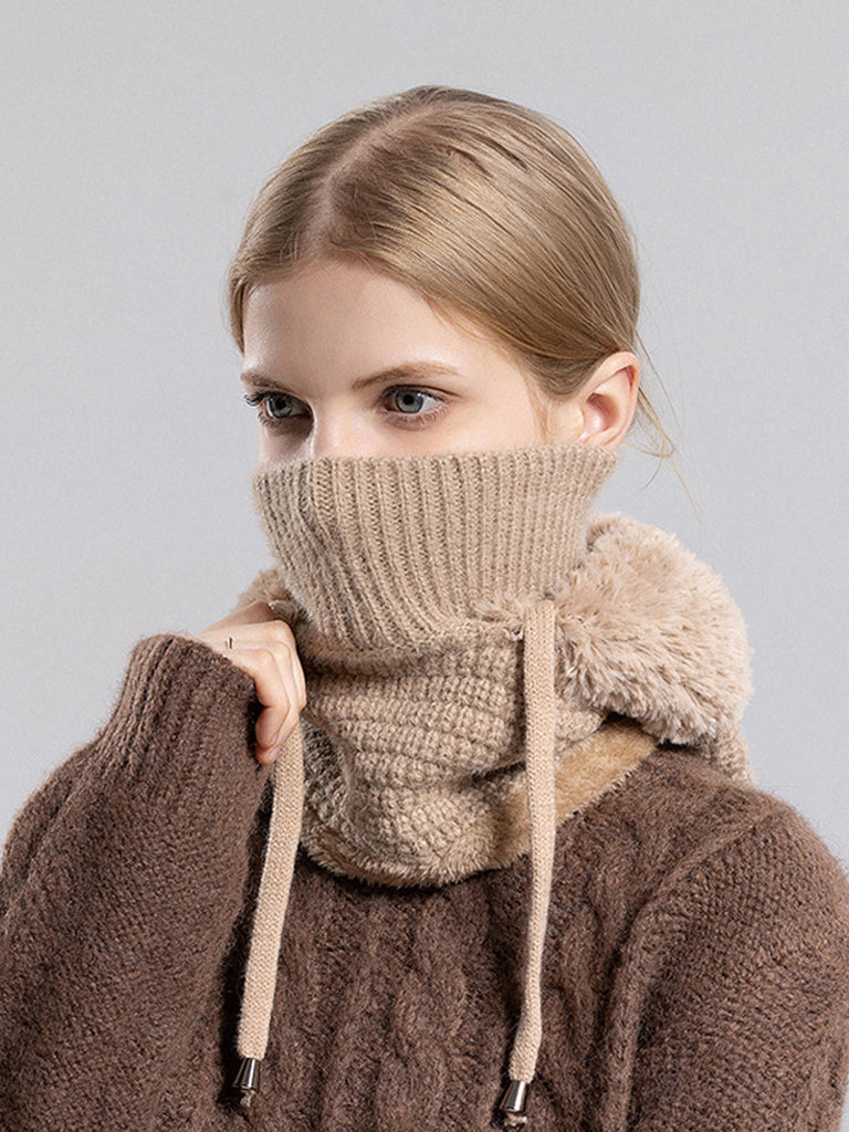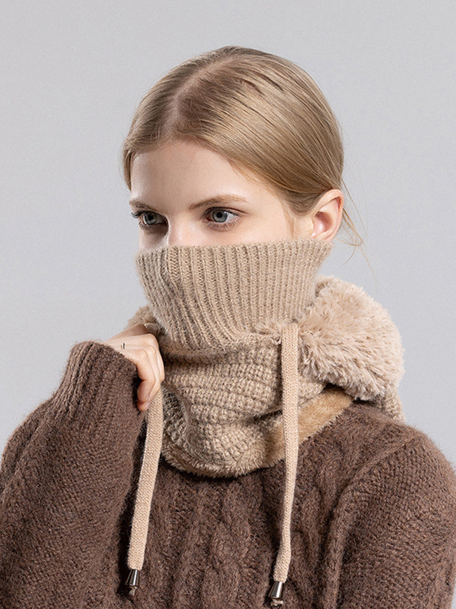 Women Winter Warm Knitted Plush Scarf Hat