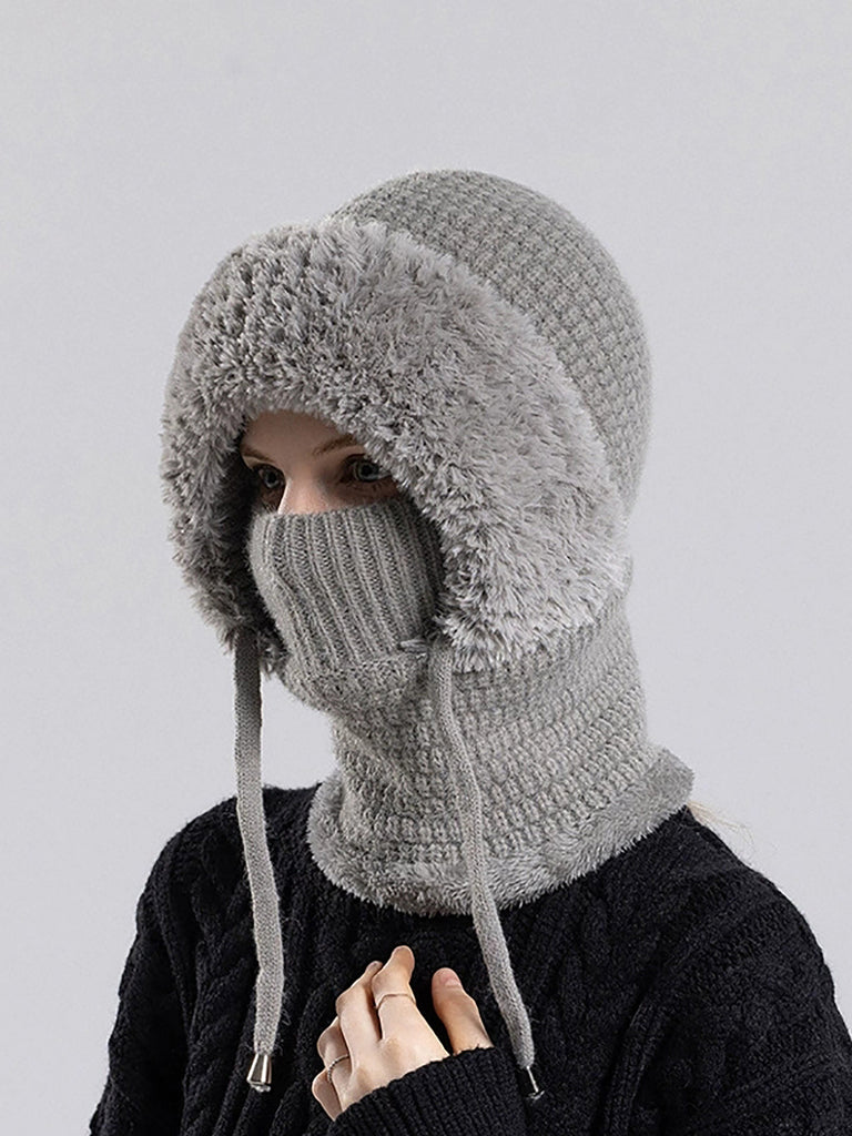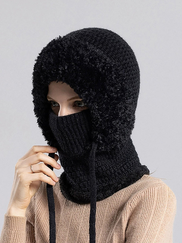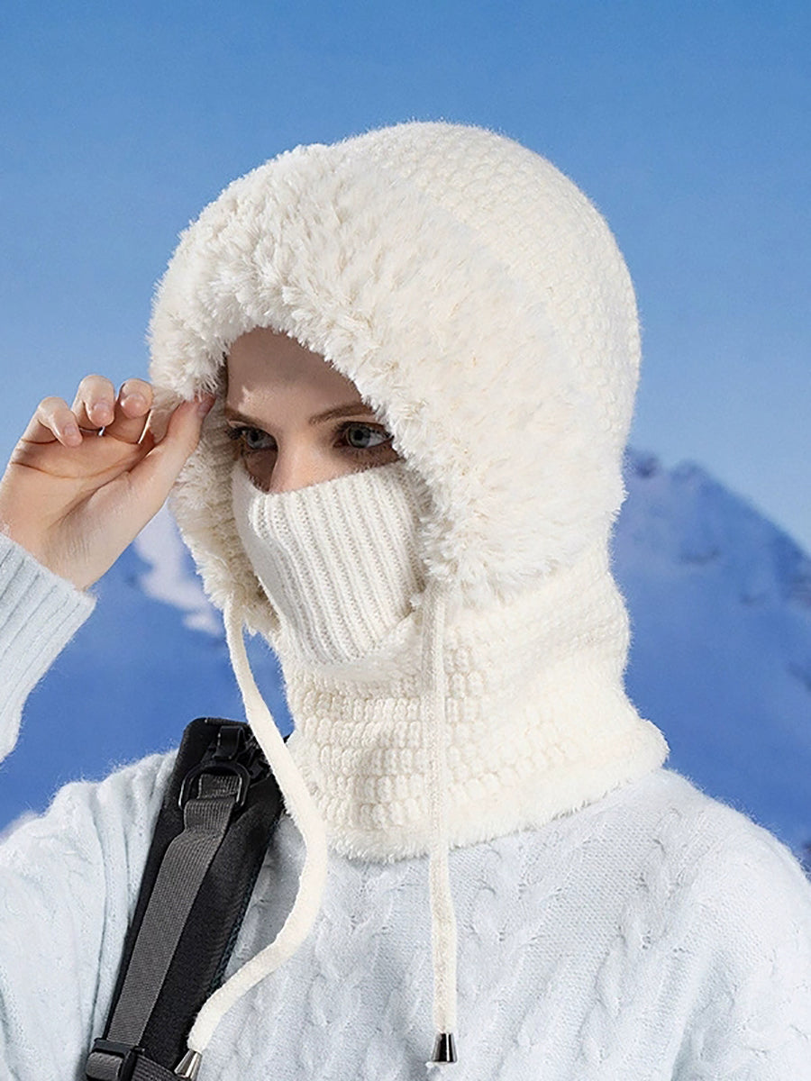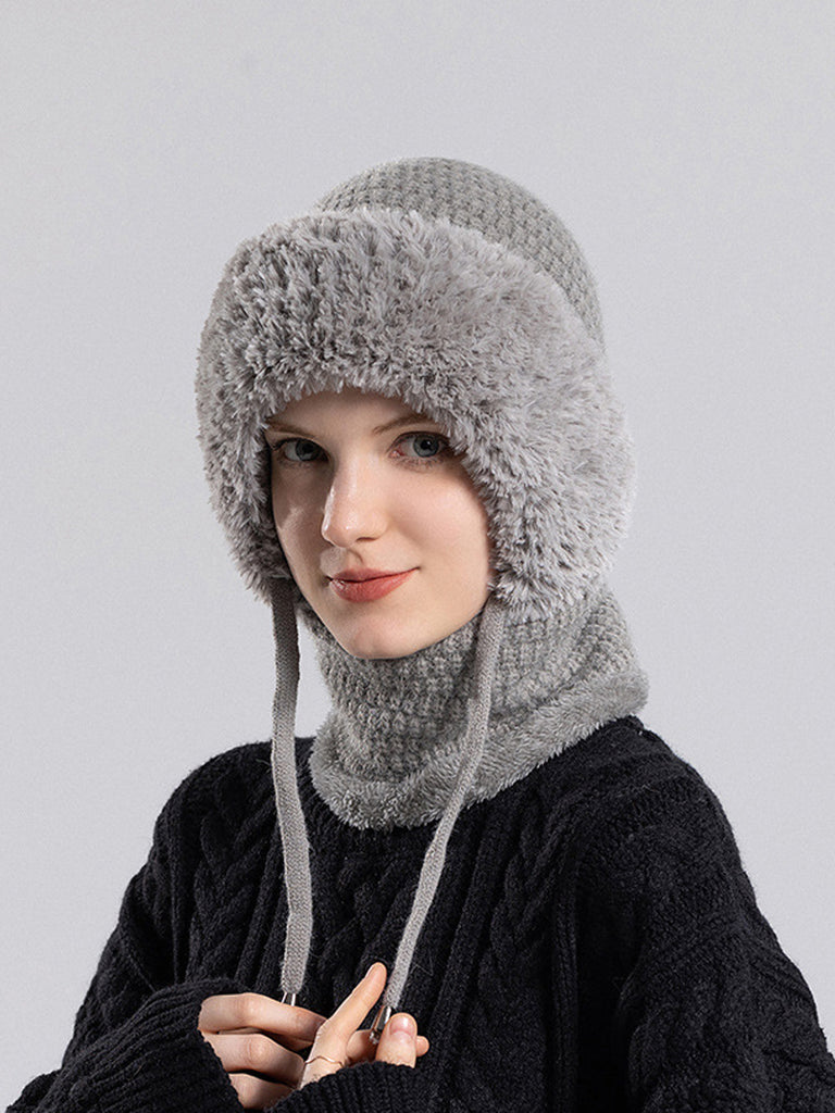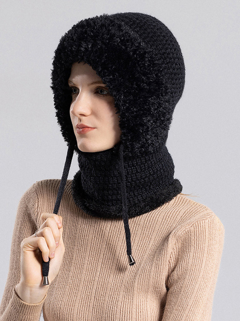 Women Winter Warm Knitted Plush Scarf Hat