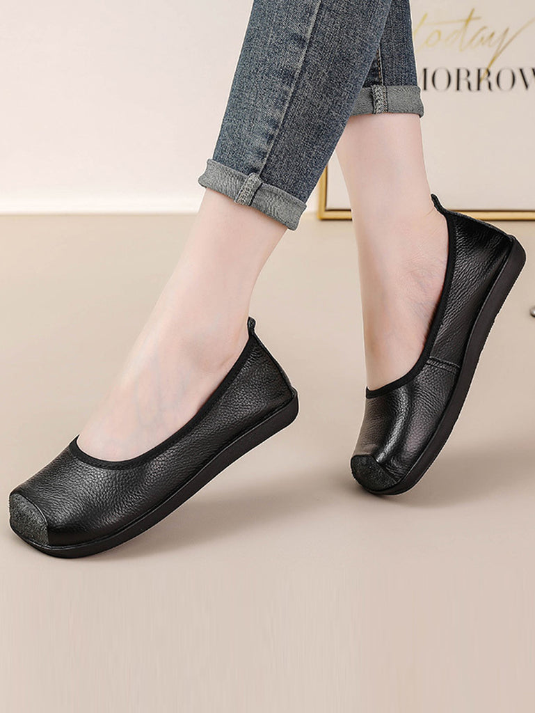 Women Casual Pure Color Genuine Leather Flat Shoes