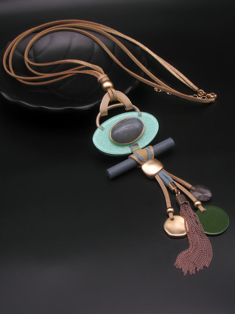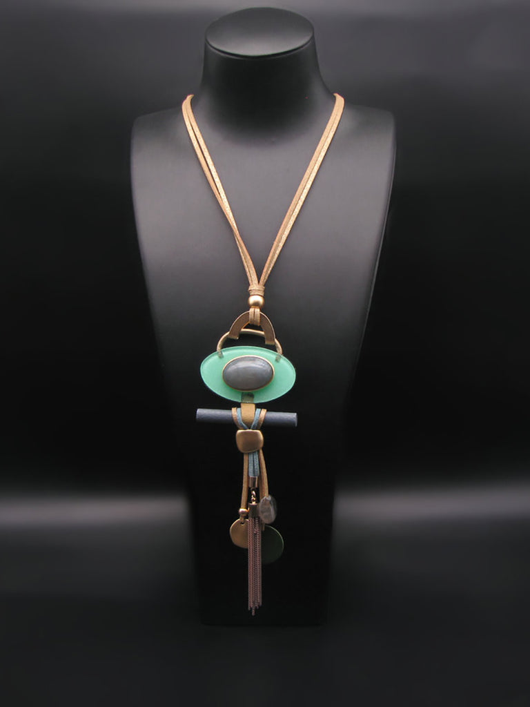 Fashion Alloy Wood Resin Sheet Weave Necklace