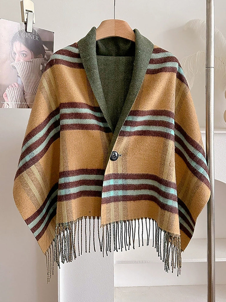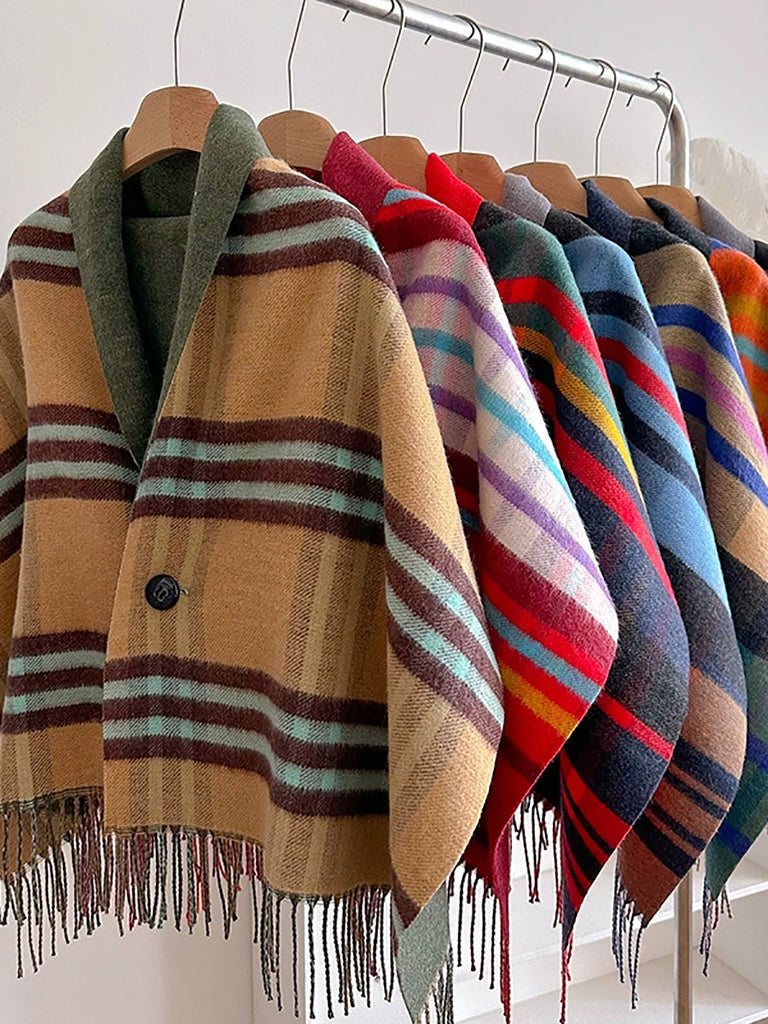 Winter Plaid Stripe Tassel Shawl Scarf