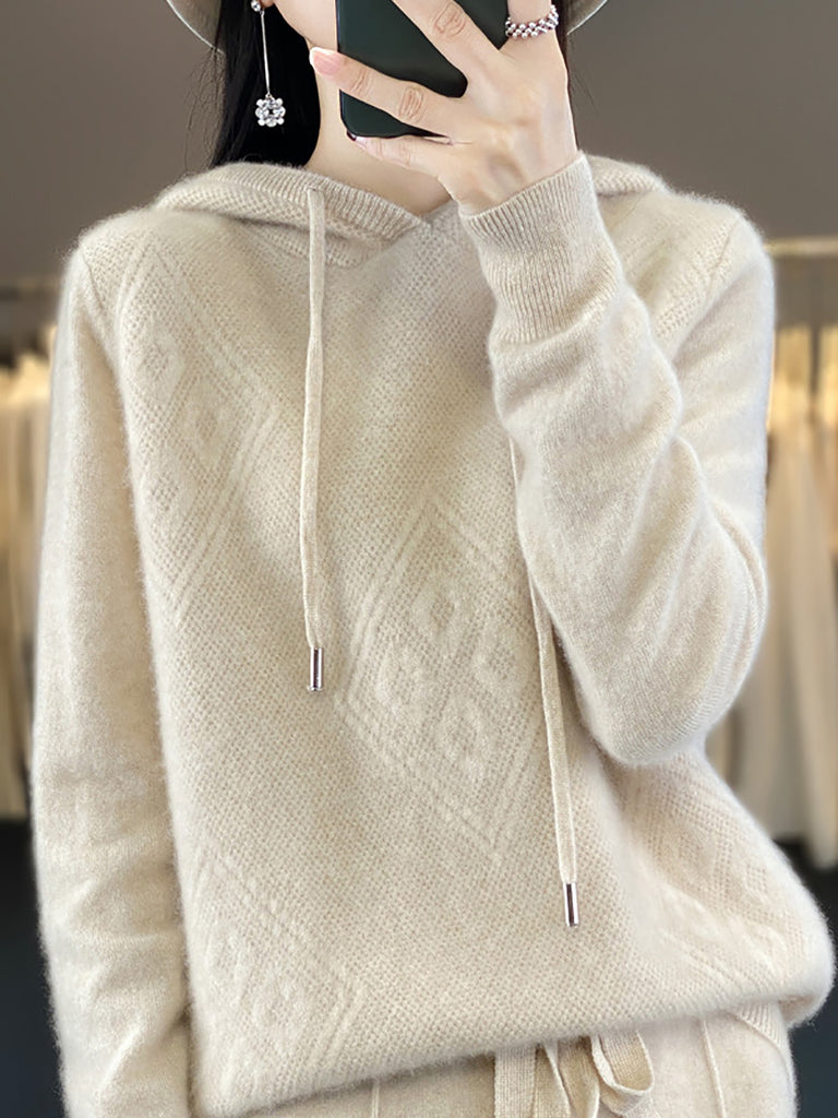 Women Winter Rhomboids Hooded Knitted Wool Sweater
