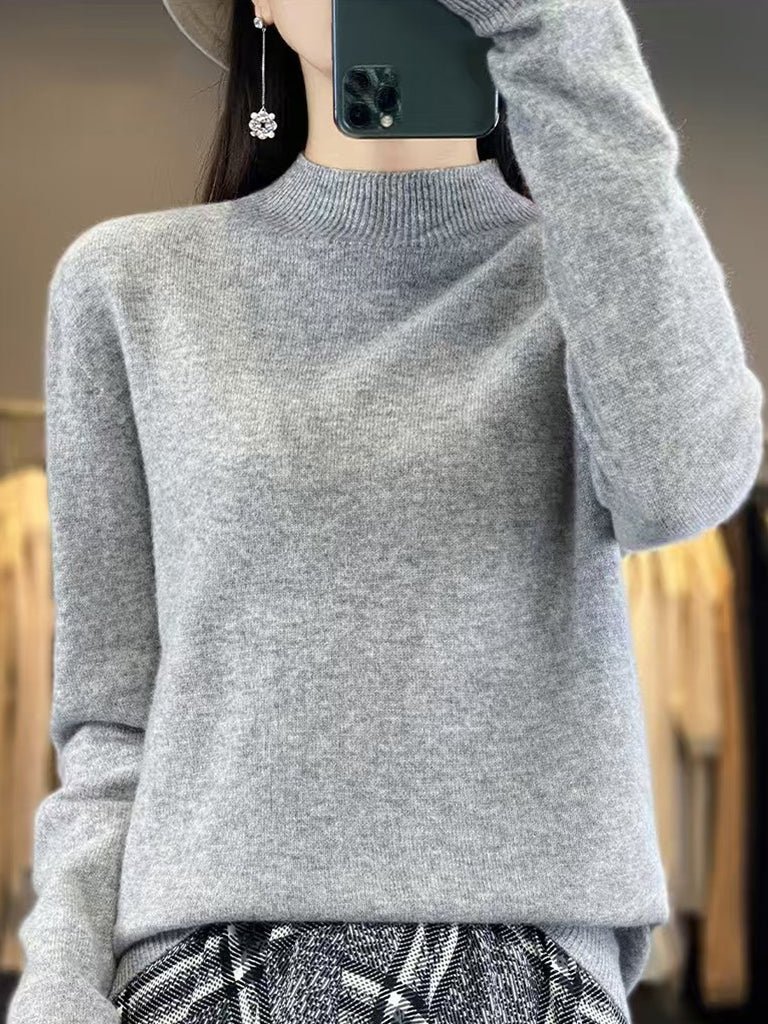 Women Winter Half-Turtleneck Knitted Wool Sweater