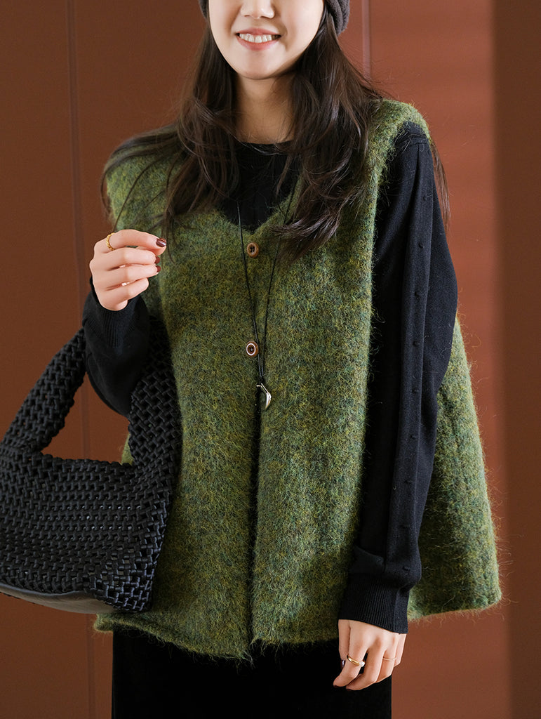 Women Winter Casual Pure Color V-Neck Wool Vest
