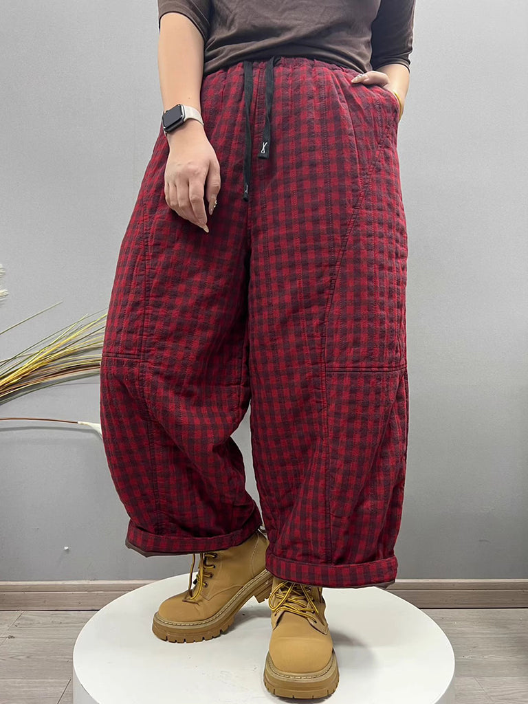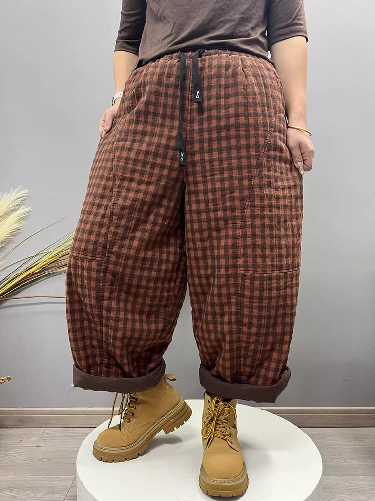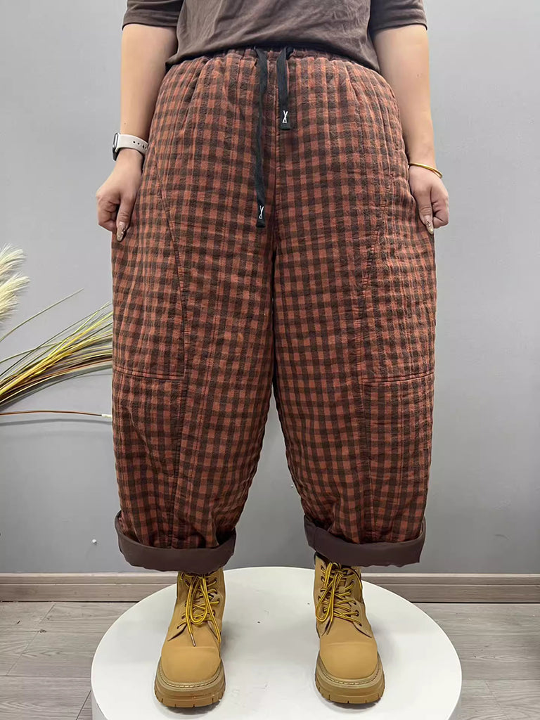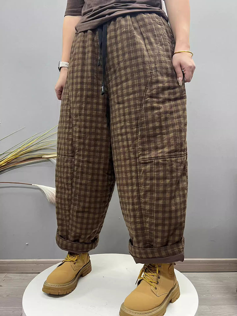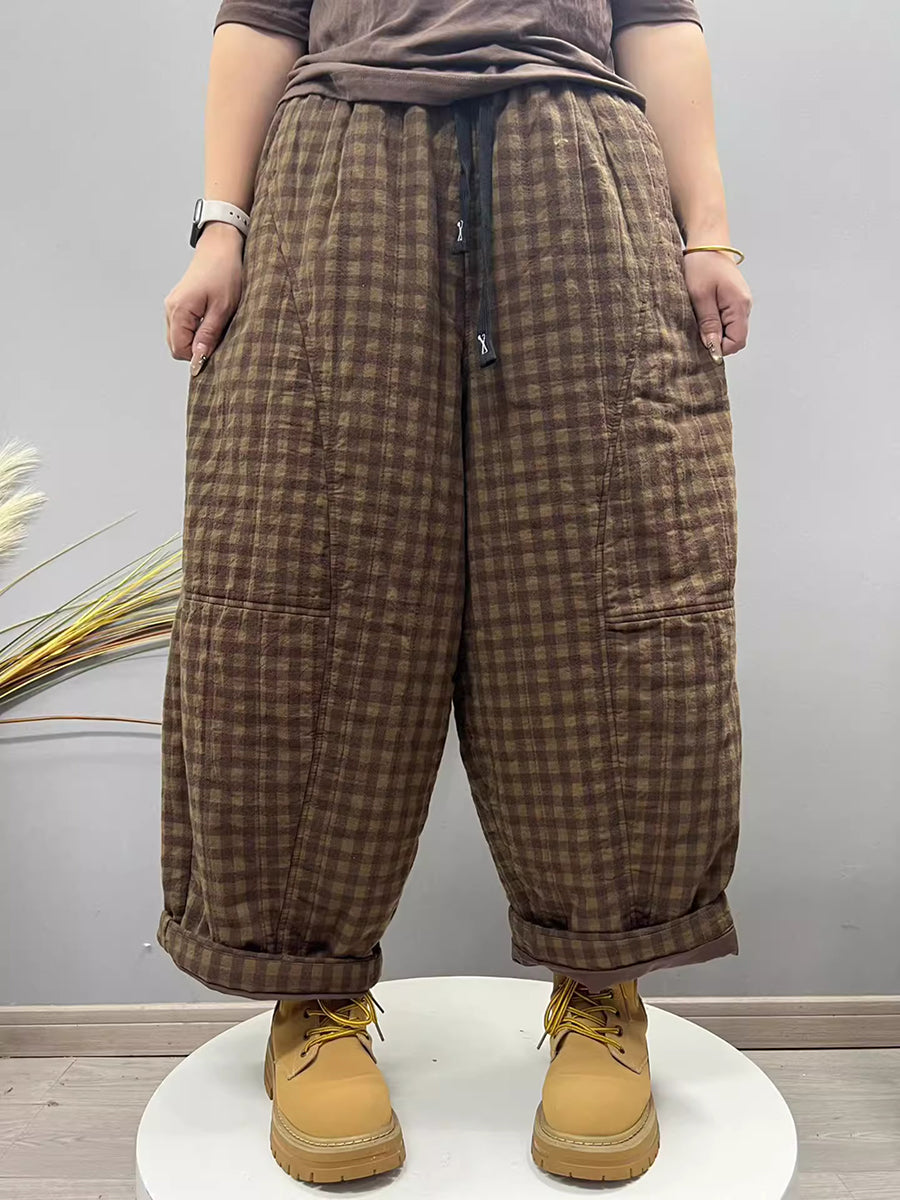 Women Winter Retro Plaid Padded Harem Pants