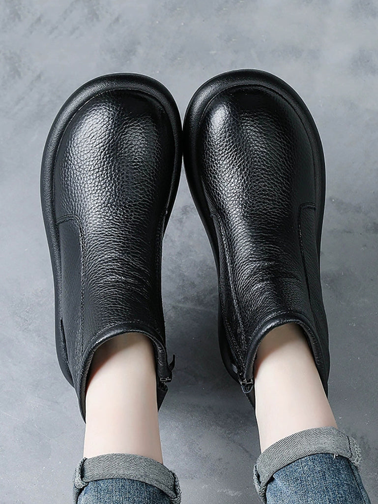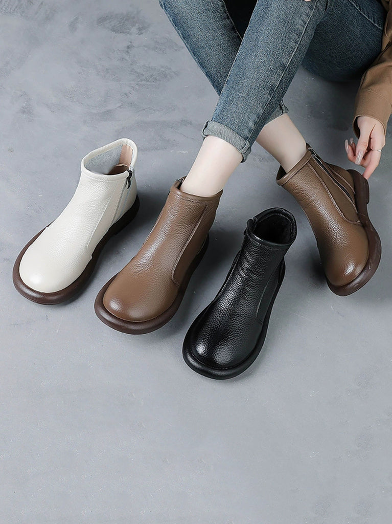 Women Winter Genuine Leather Fleece-lined Ankle Boots