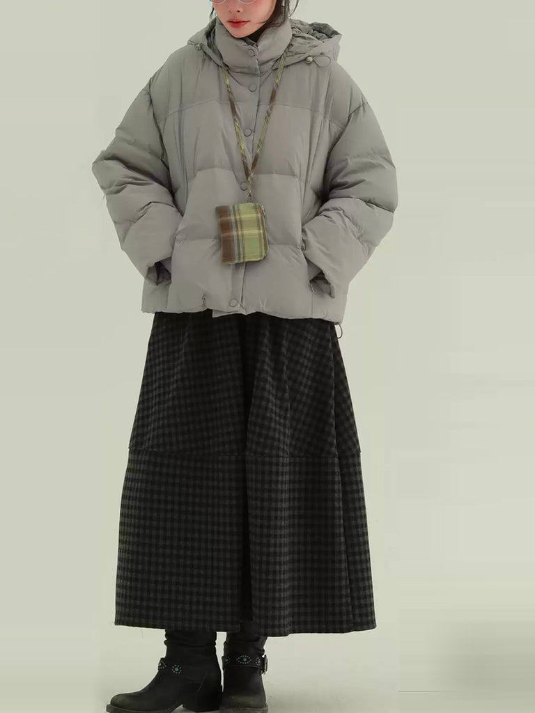 Women Winter Fleece-lined Plaid A-Shape Skirt