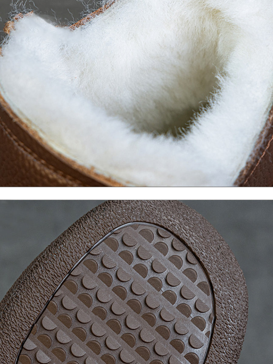 Women Winter Genuine Leather Fleece-lined Ankle Boots