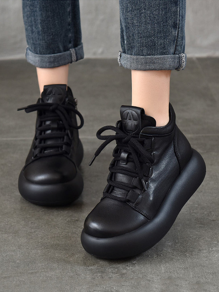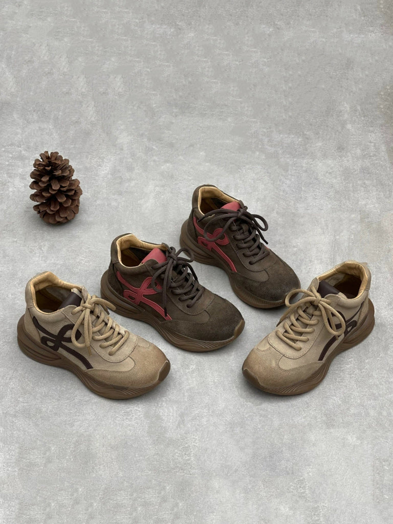 Women Vintage Genuine Leather Spliced Platform Shoes