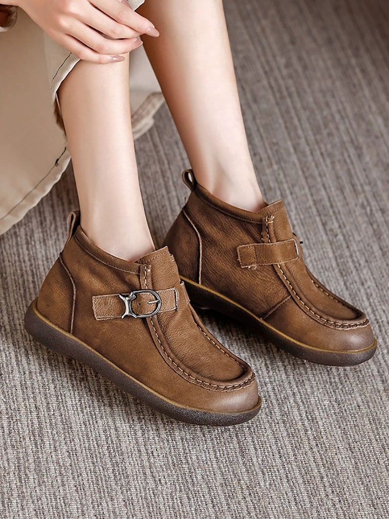 Women Vintage Soft Leather Flat Ankle Boots