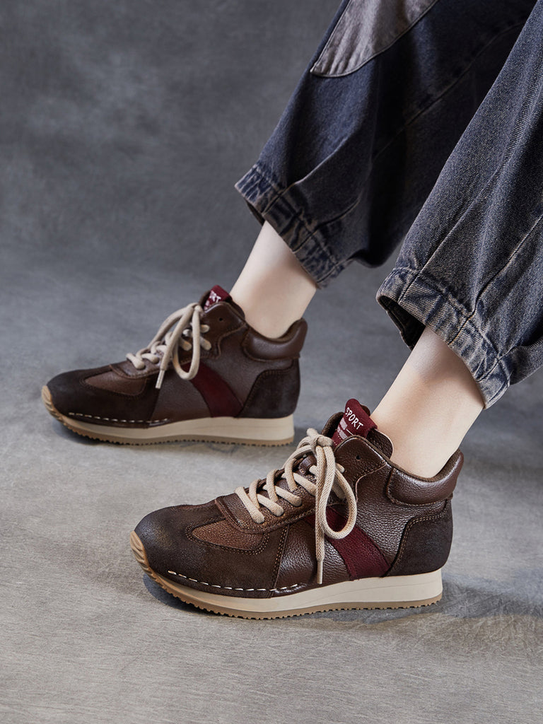 Women Vintage Genuine Leather Spliced High-top Shoes