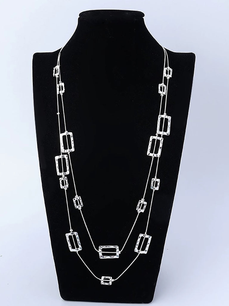 Women Fashion Quadrilateral Alloy Dual-Layer Necklace