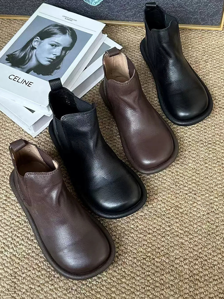 Women Vintage Genuine Leather Strap Low Heel Boots