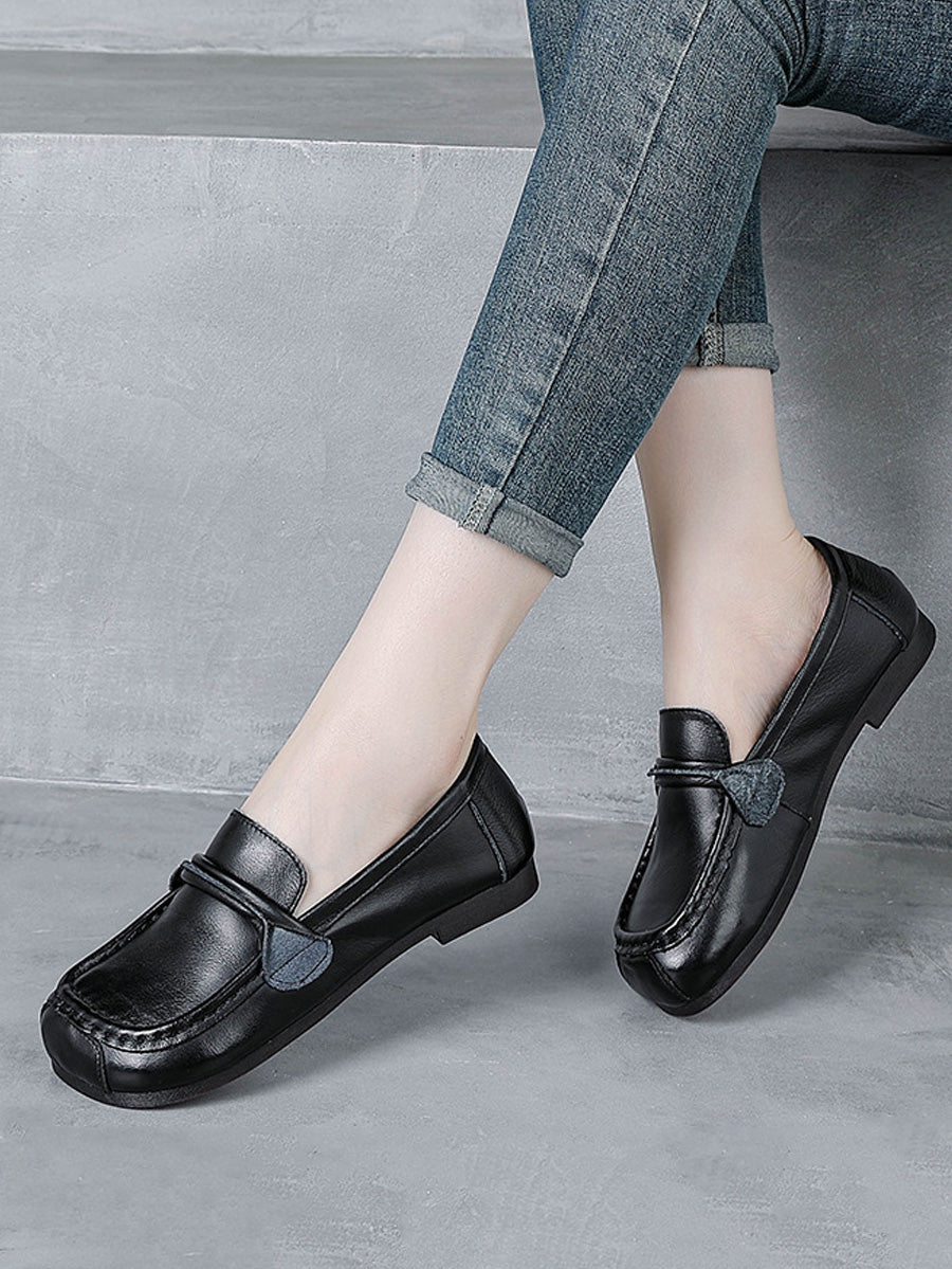 Women Spring Retro Genuine Leather Low Heel Shoes