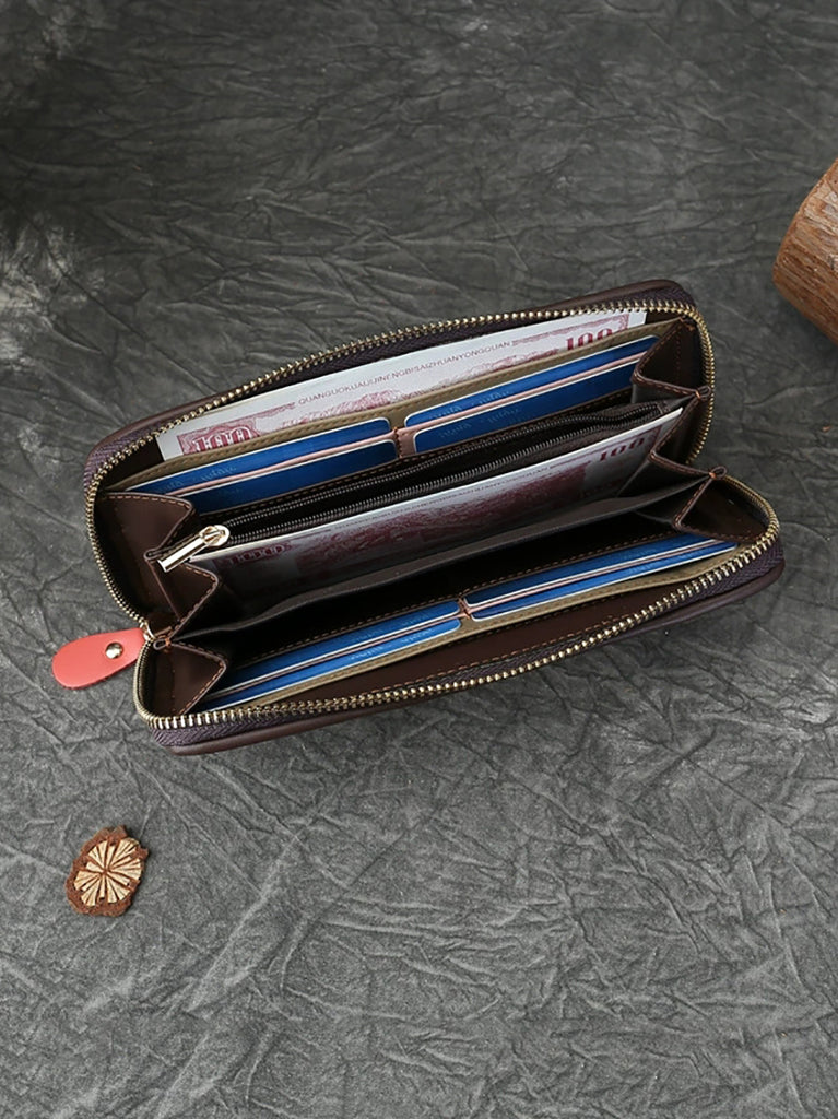 Women Vintage Multicolor Leather Weave Multifunction Wallet
