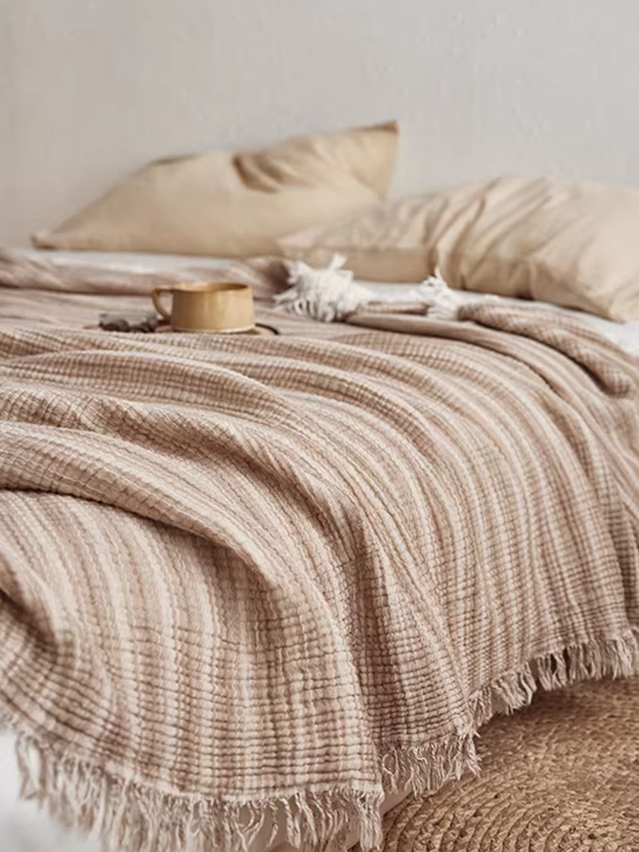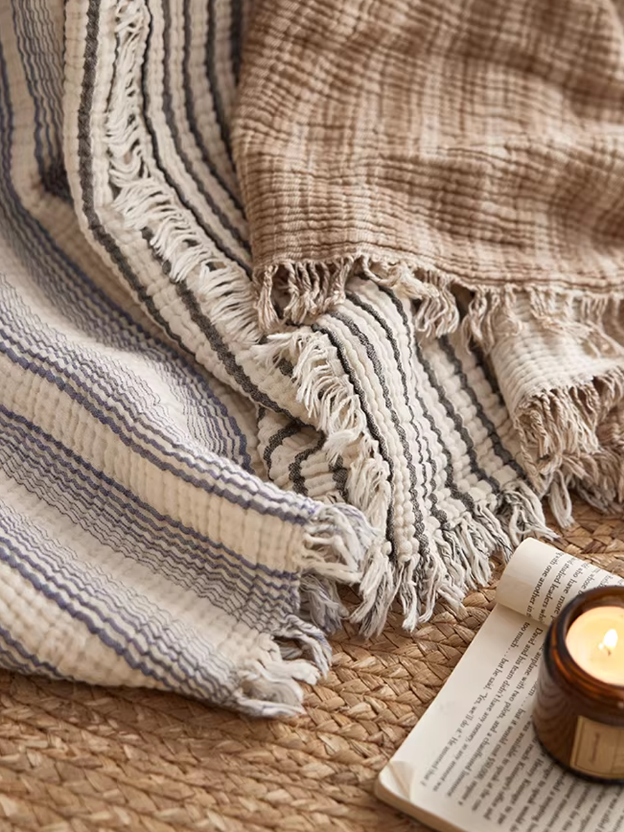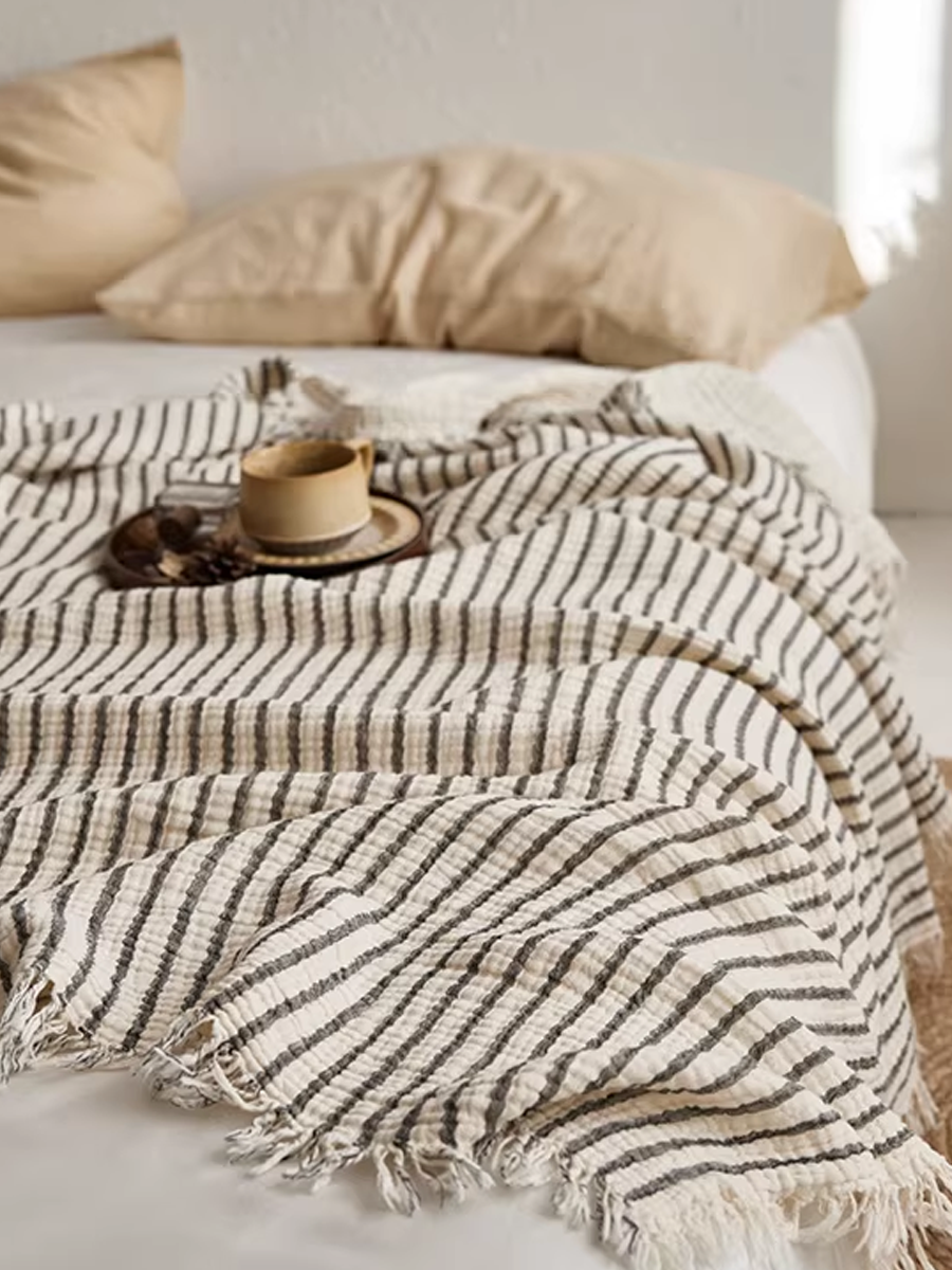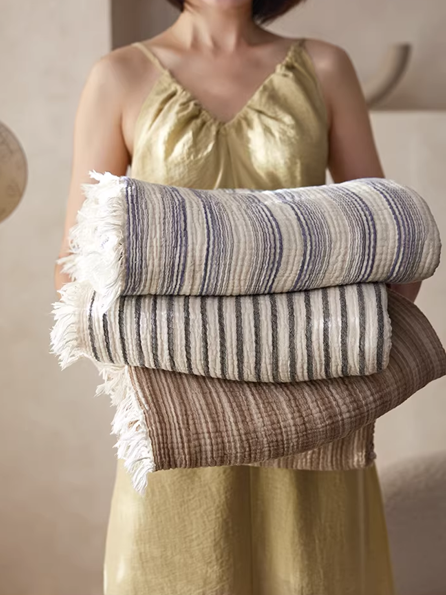 Yarn-Dyed Gauze Artistic Stripe Throw Blanket