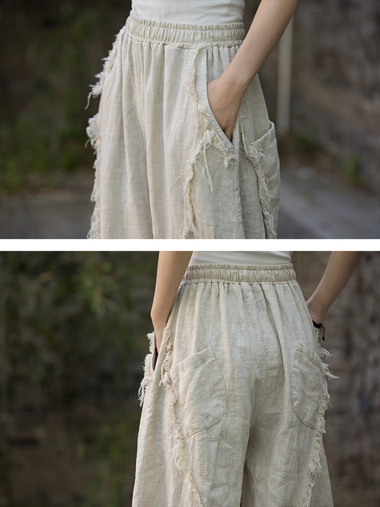 Women Summer Worn Raw-edge Ramie Harem Pants