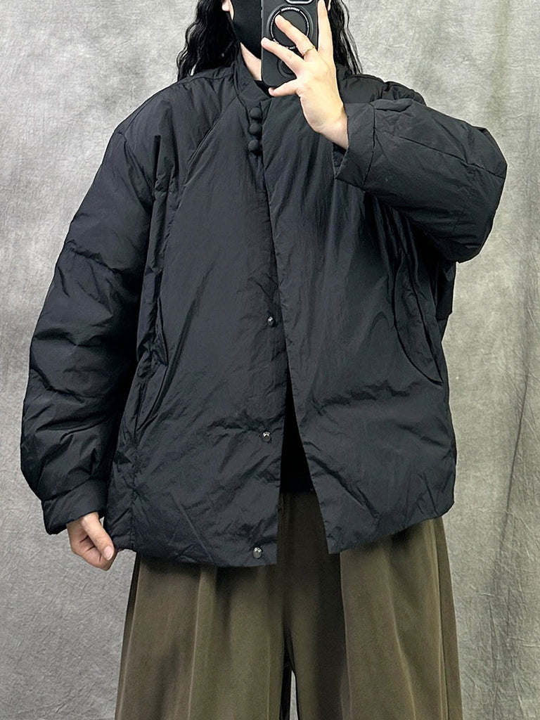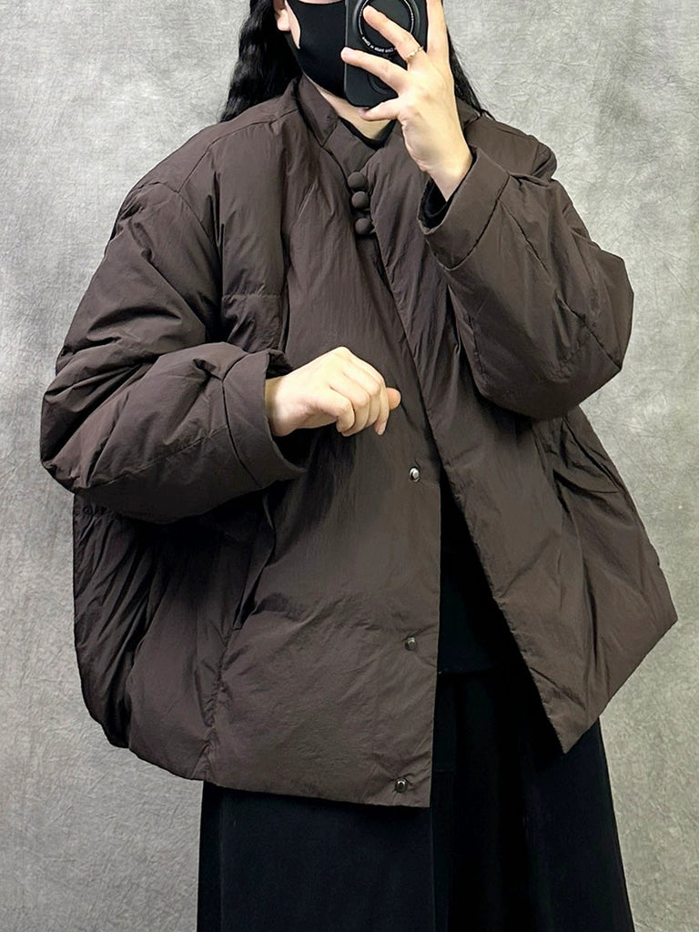 Women Retro Winter Pure Color Stand Collar Padded Coat