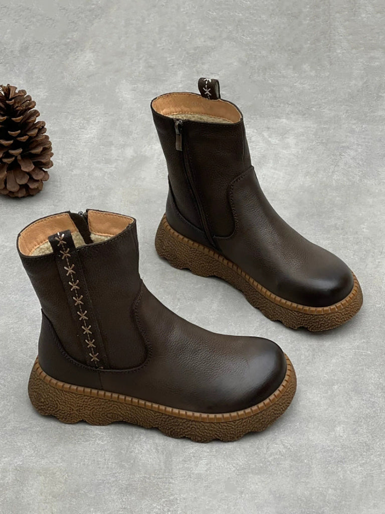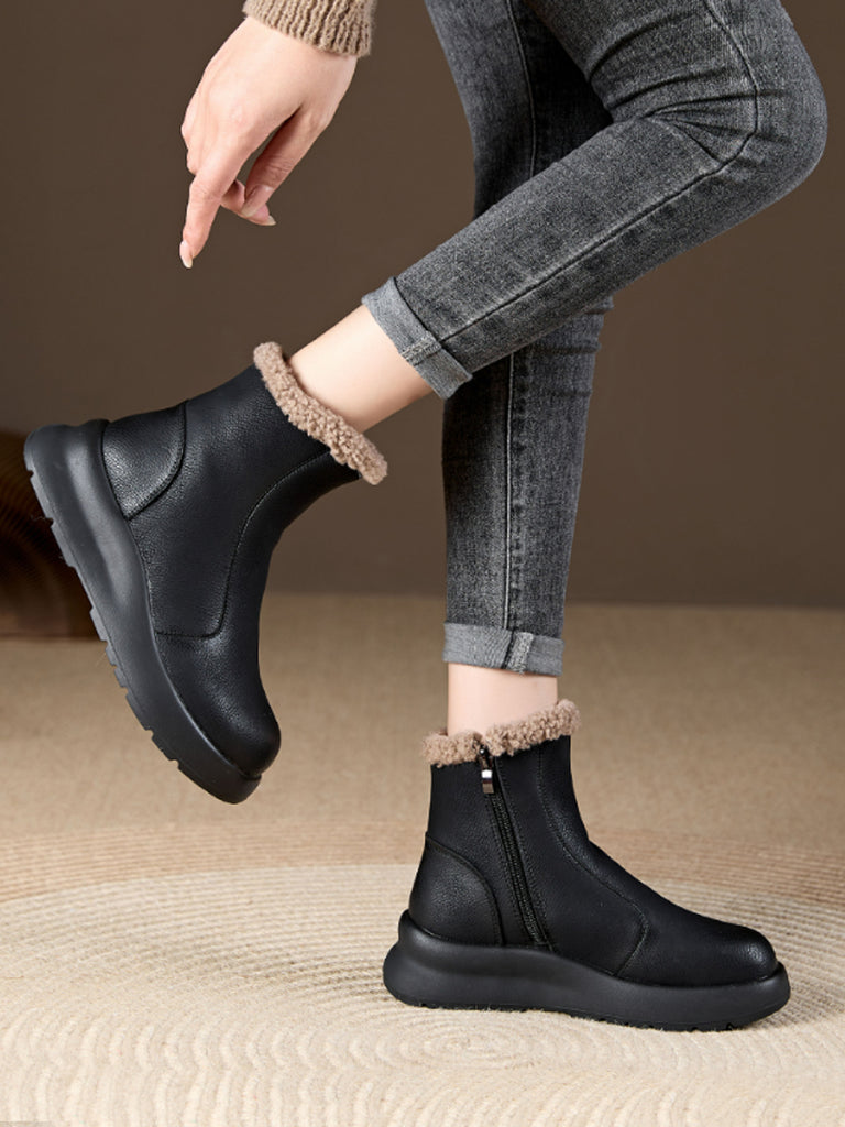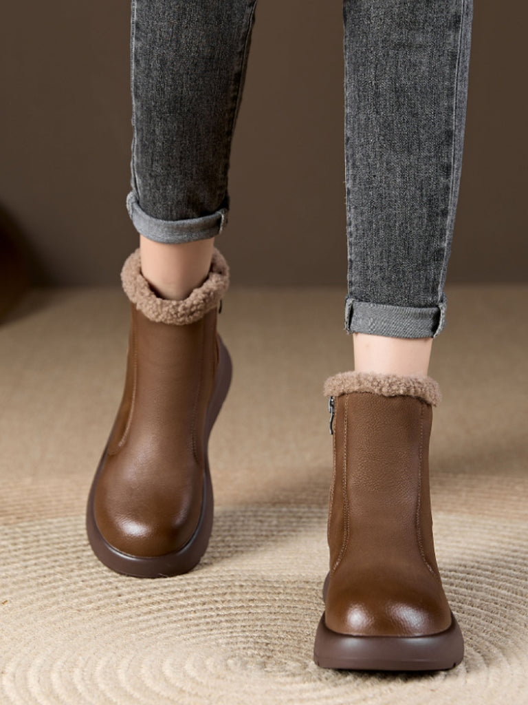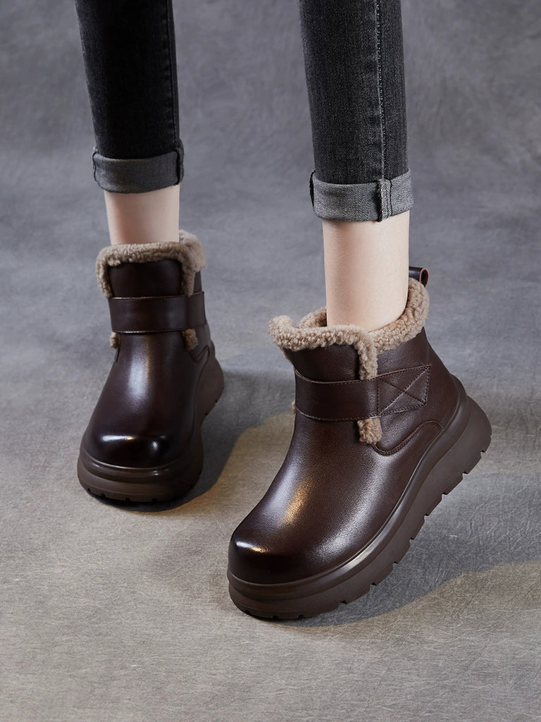 Women Winter Solid Leather Fleece-lined Ankle Boots