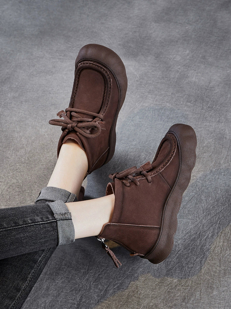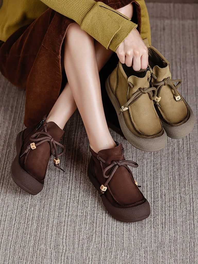 Women Winter Vintage Genuine Leather Drawstring Ankle Boots