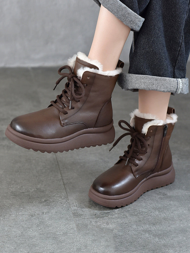 Women Winter Casual Genuine Leather Fleece-lined Boots