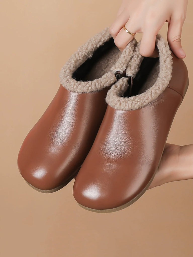 Women Winter Leather Fleece-lined Flat Ankle Boots