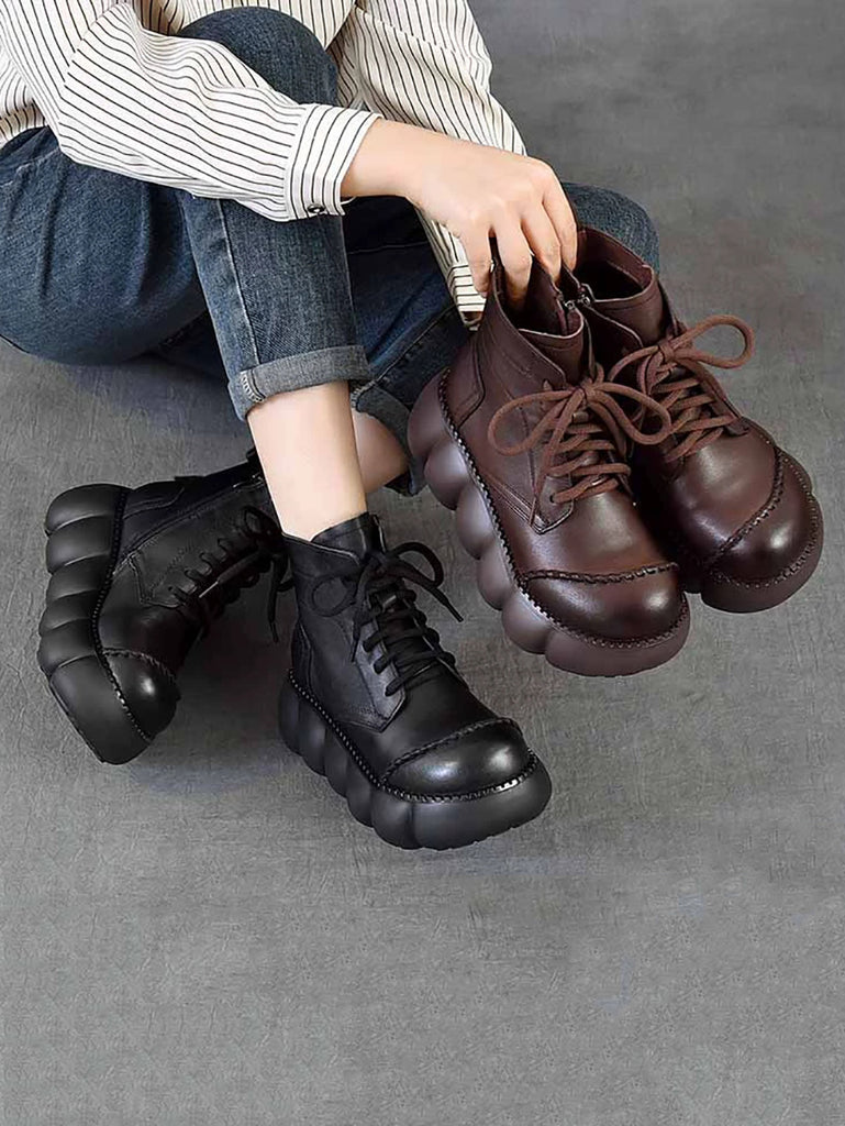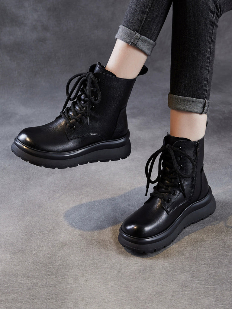 Women Winter Genuine Leather Fleece-lined Martin Boots
