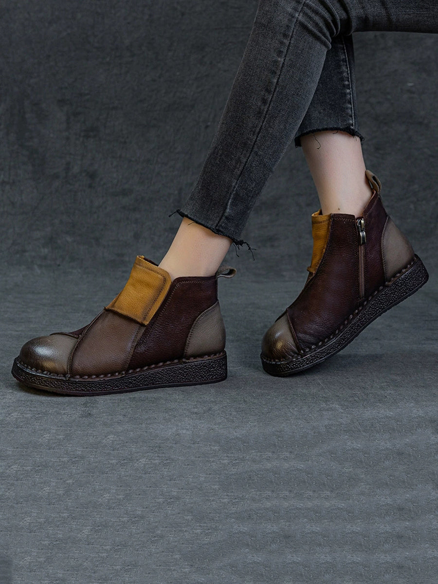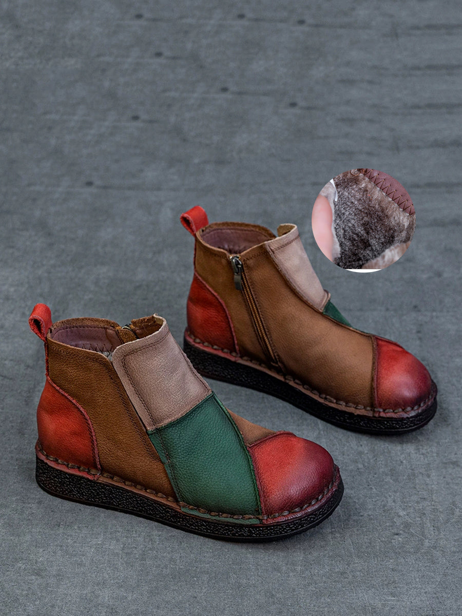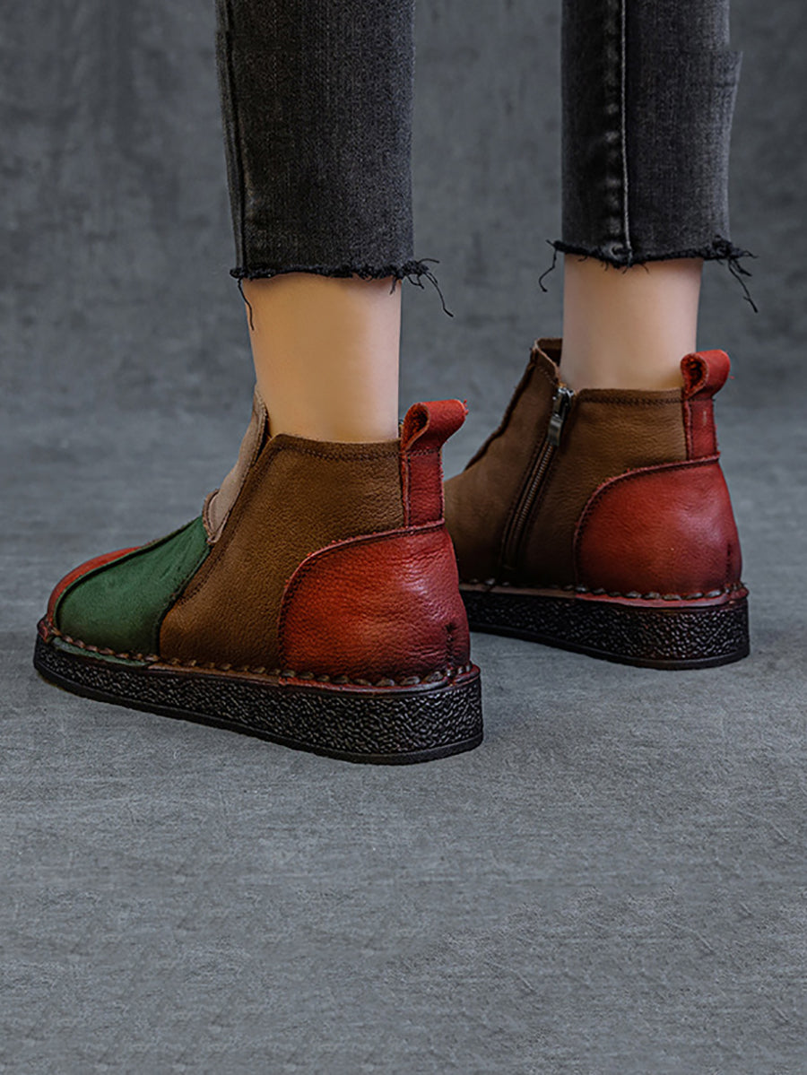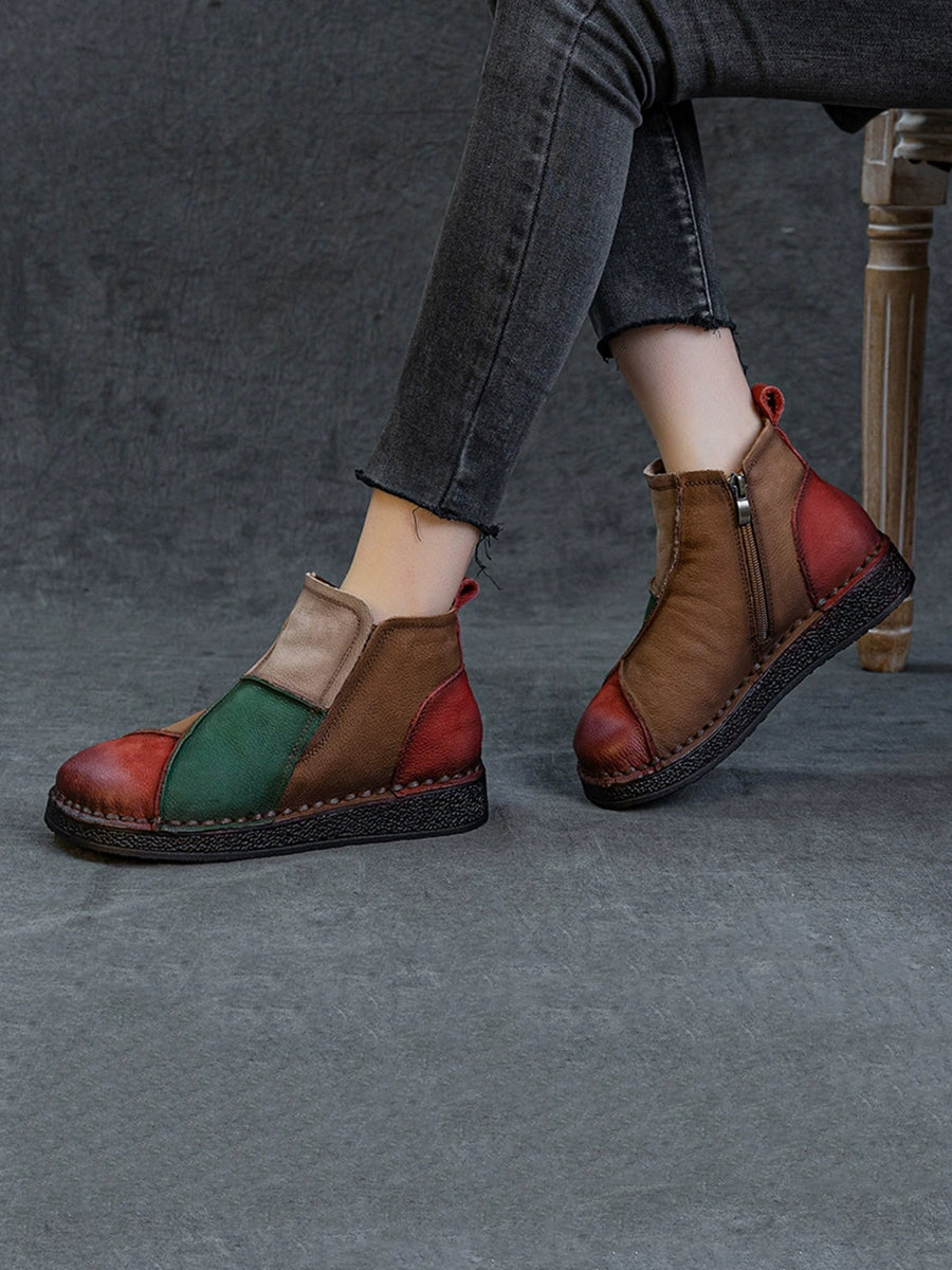 Women Winter Colorblock Genuine Leather Ankle Boots