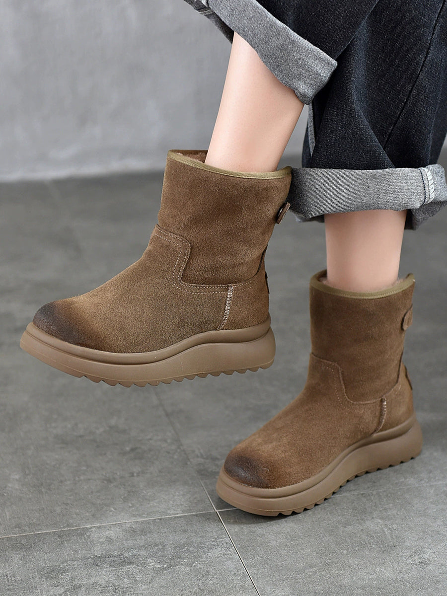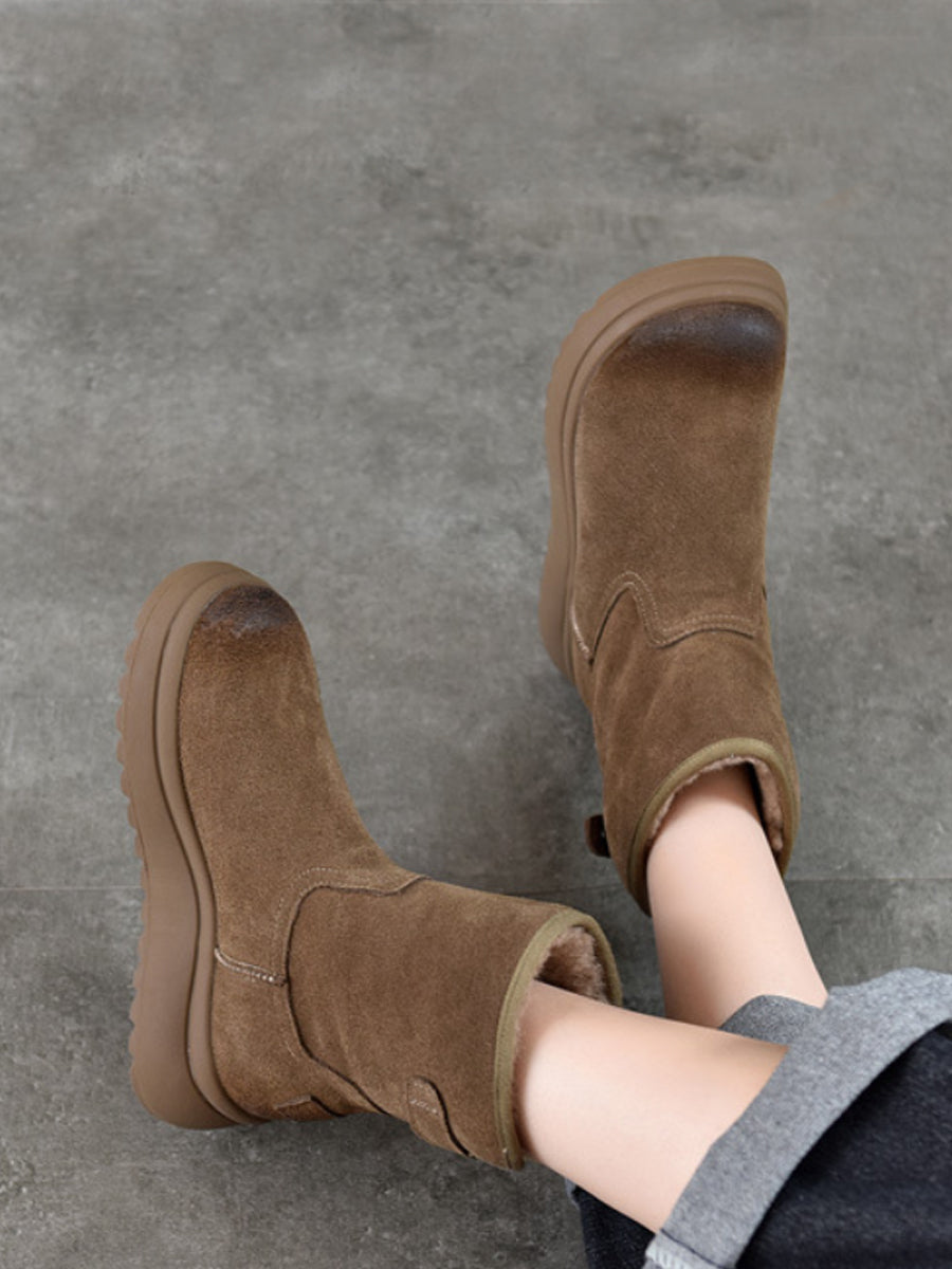 Women Winter Suded Leather Fleece-lined Boots