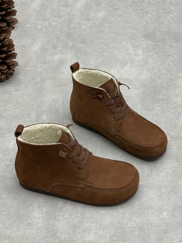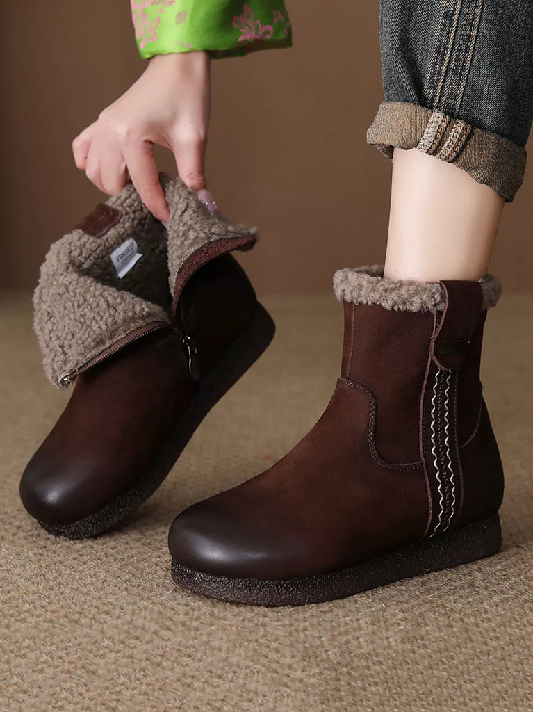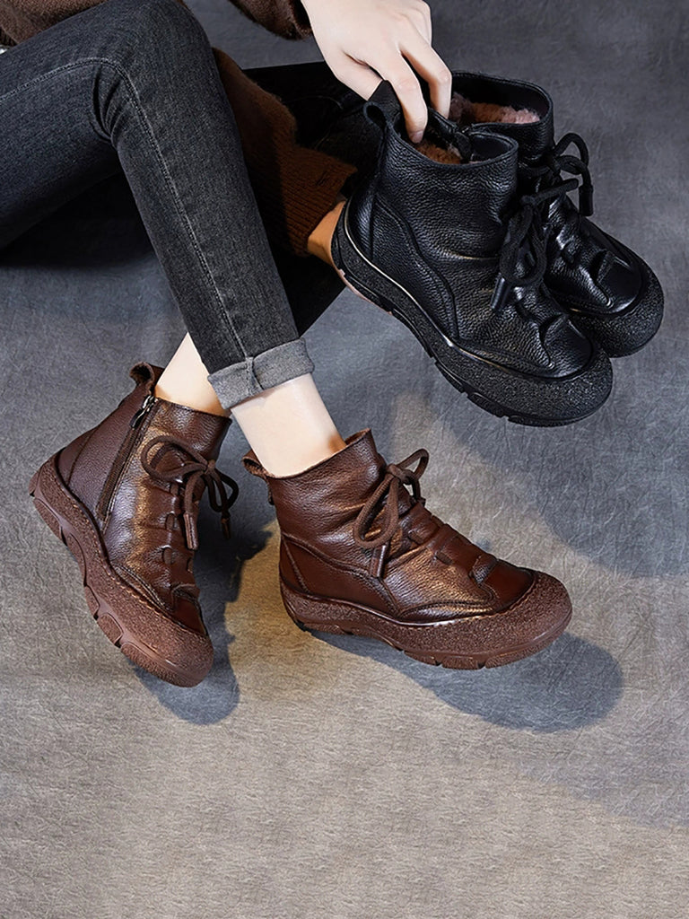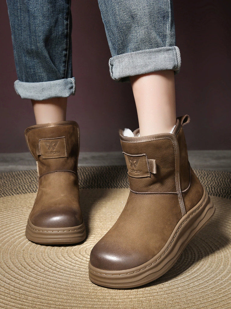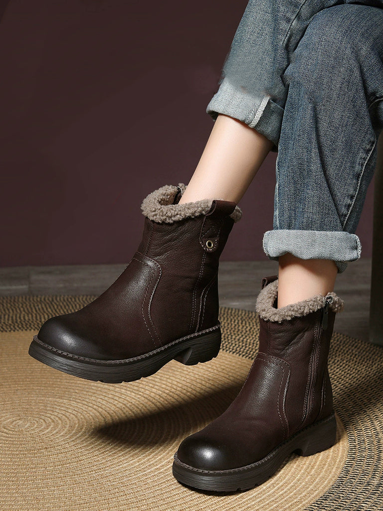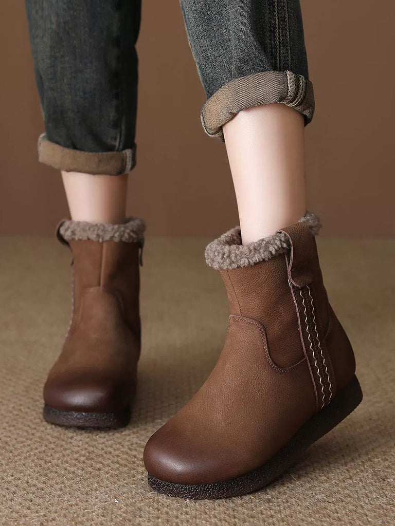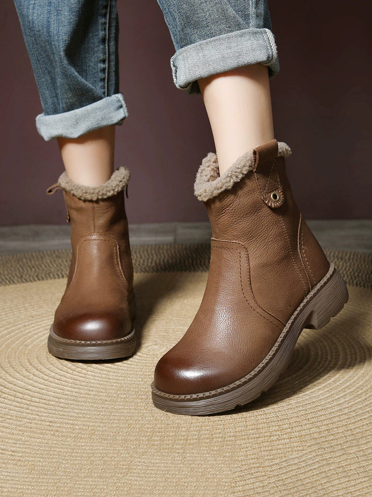 Women Winter Retro Leather Fleece-lined Ankle Boots