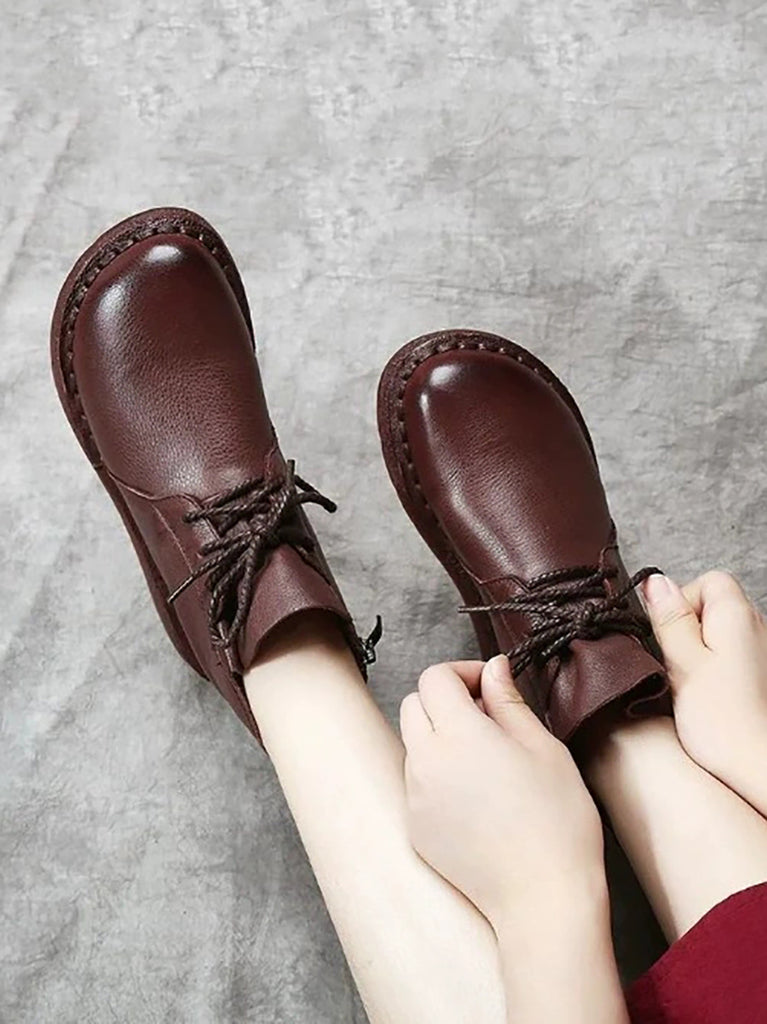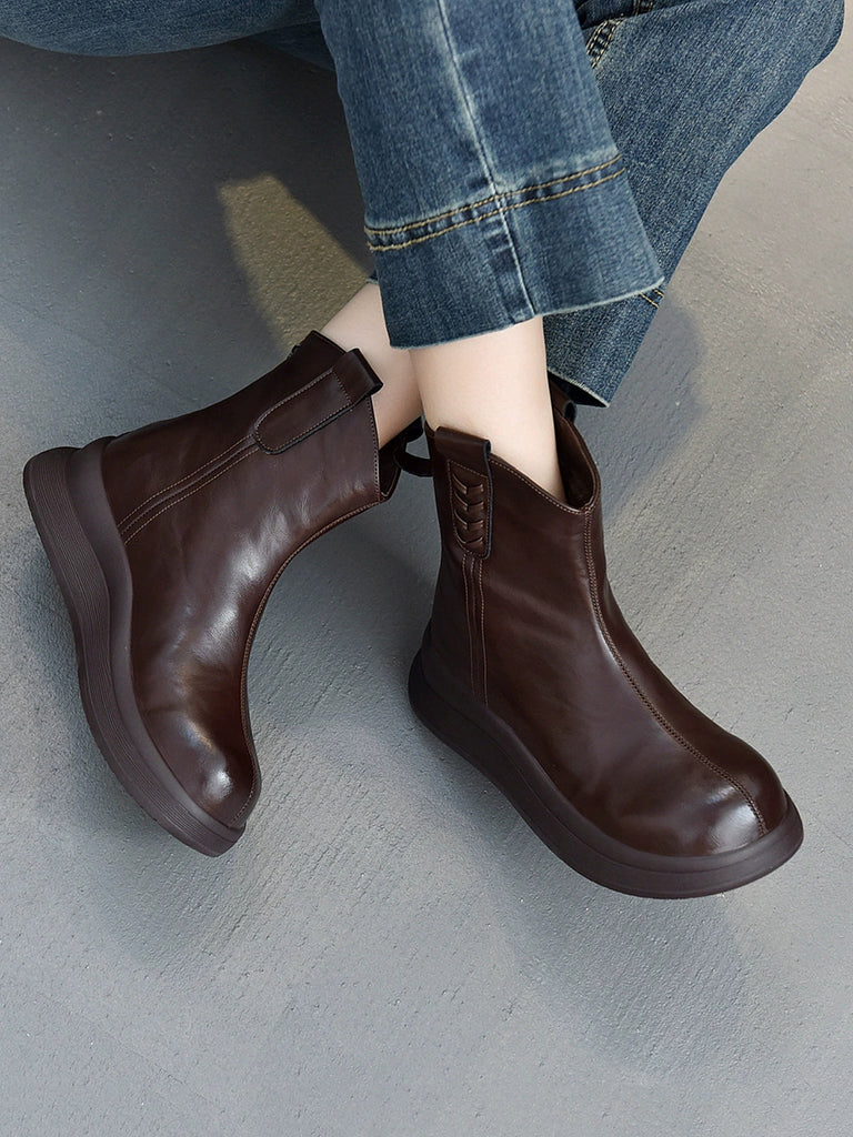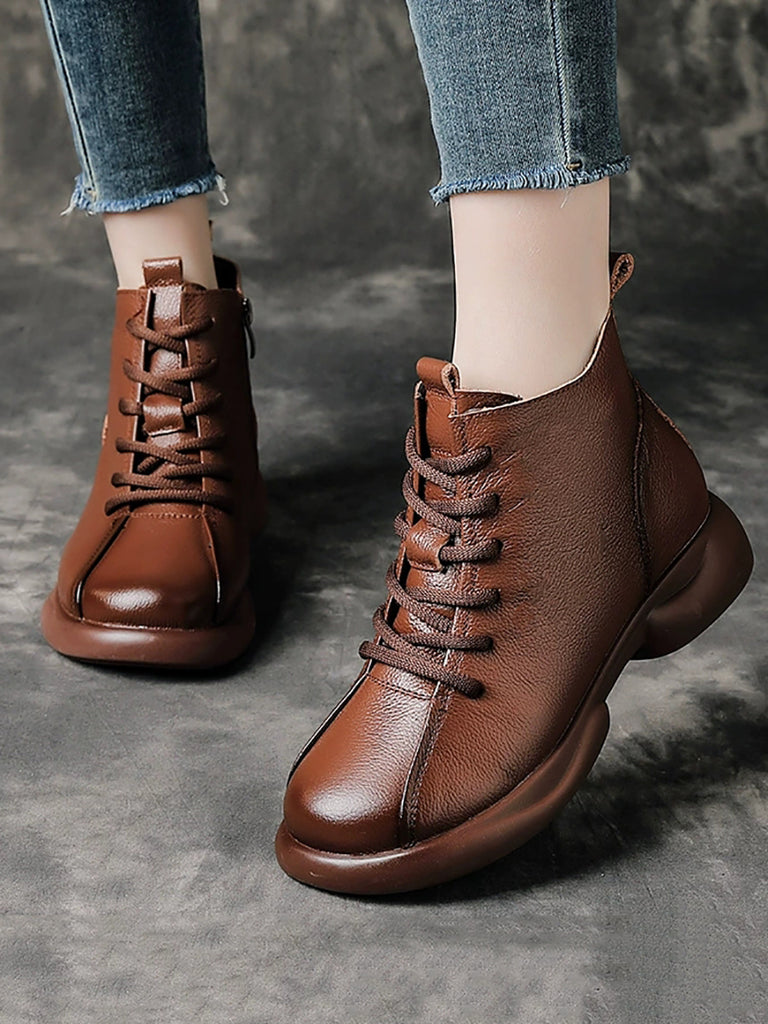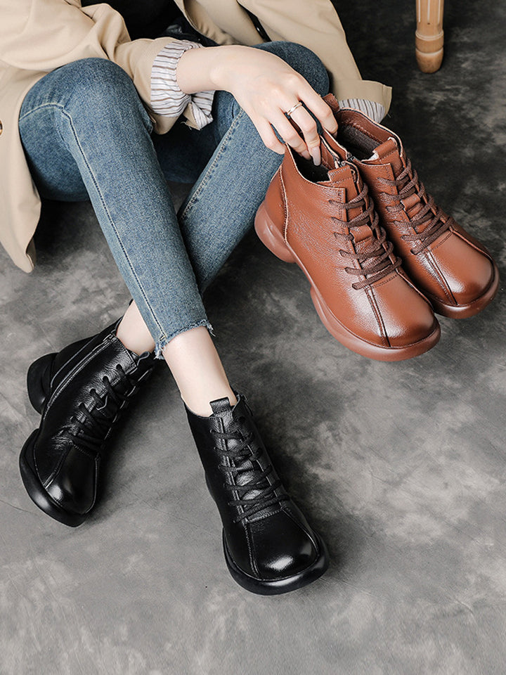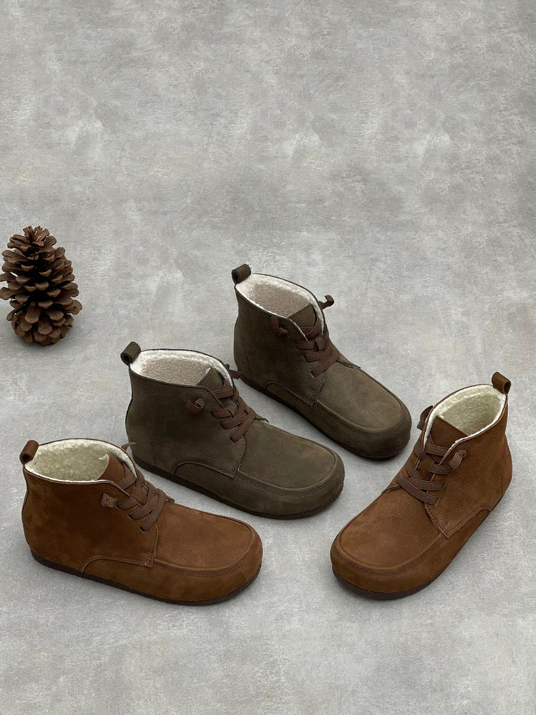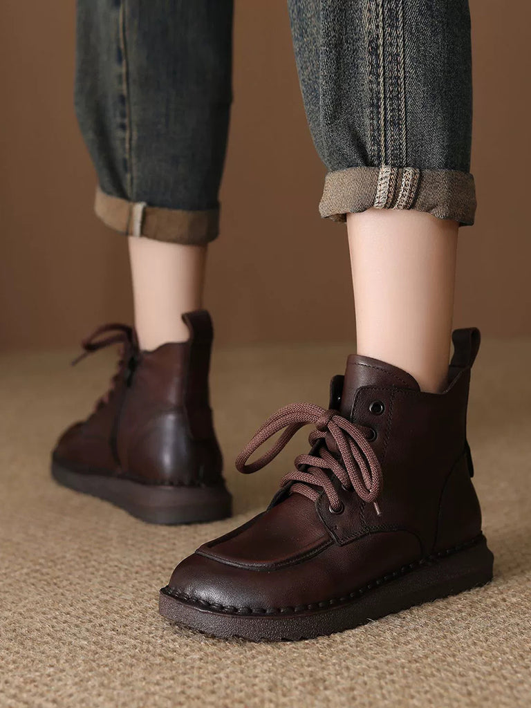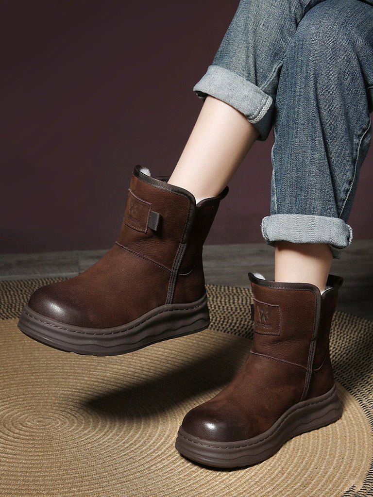 Women Winter Retro Leather Fleece-lined Ankle Boots
