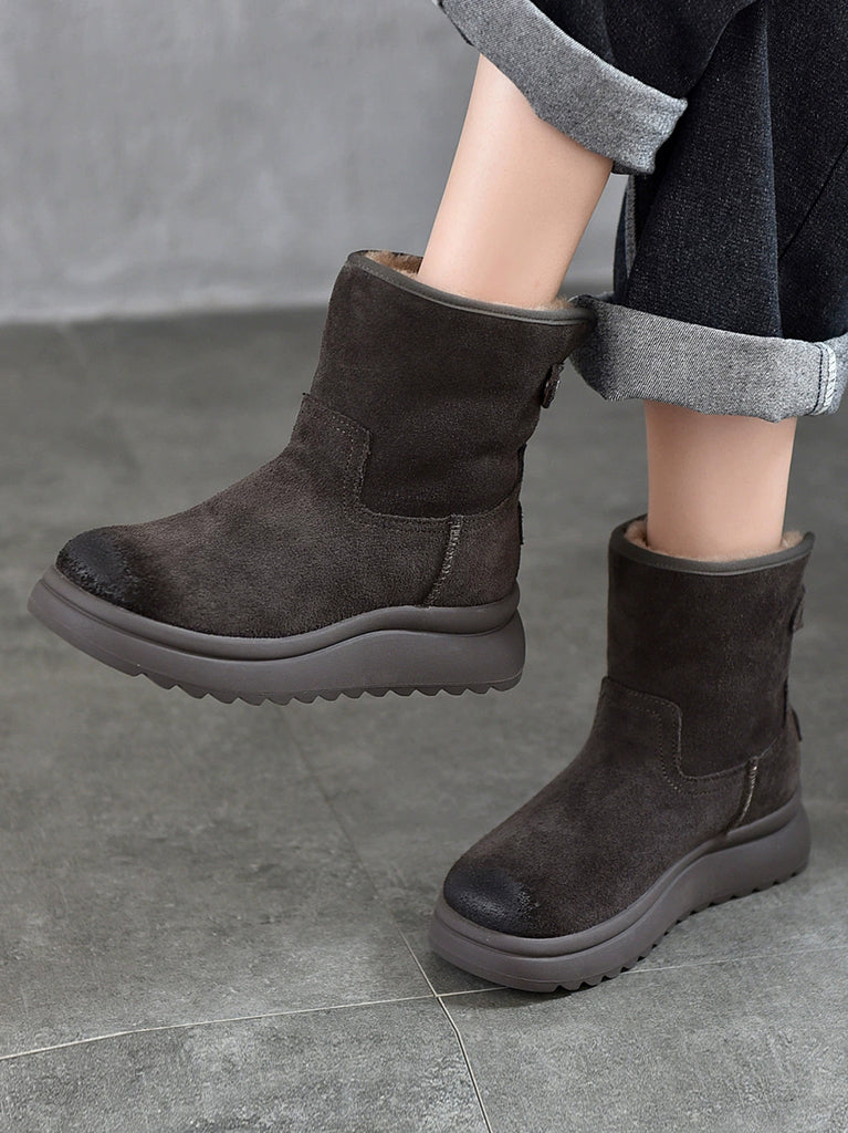 Women Winter Suded Leather Fleece-lined Snow Boots