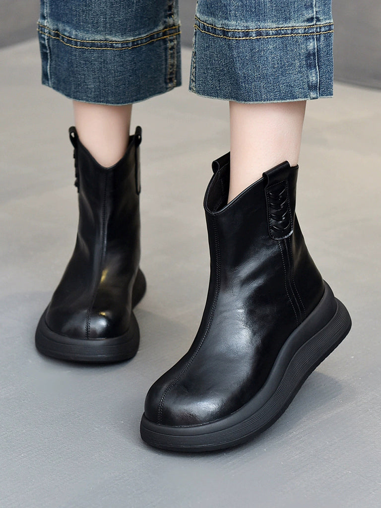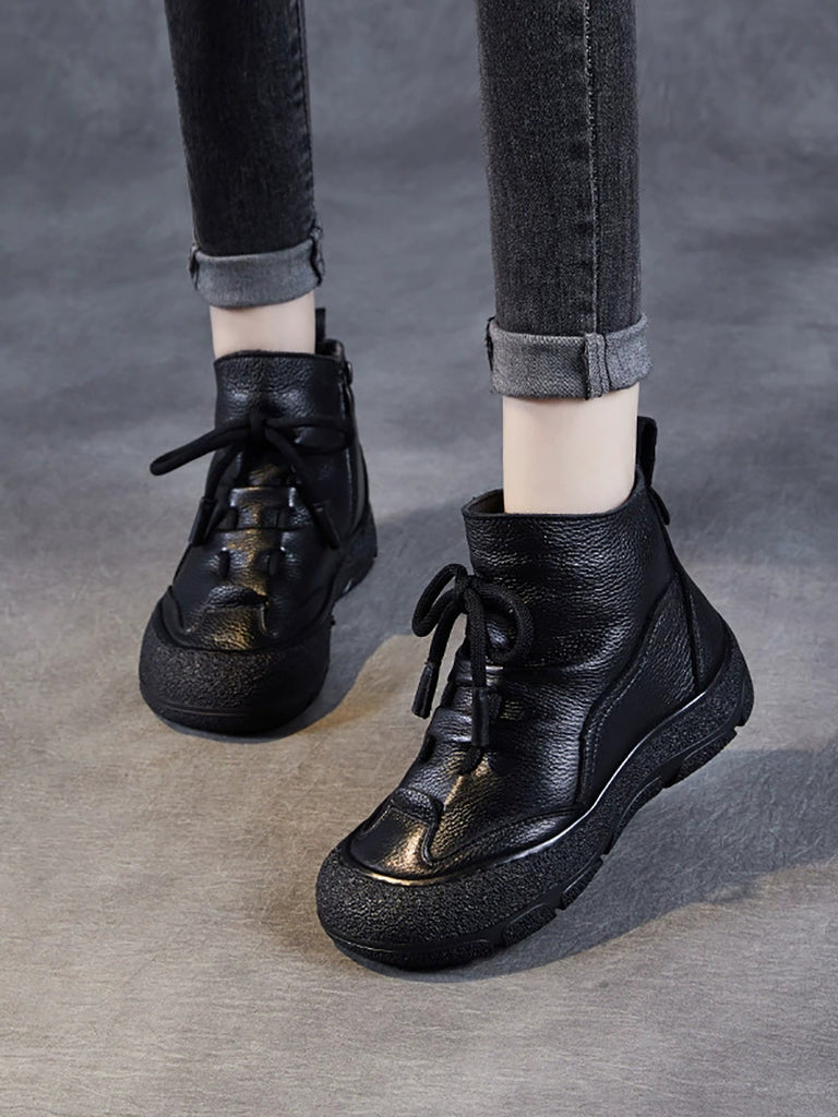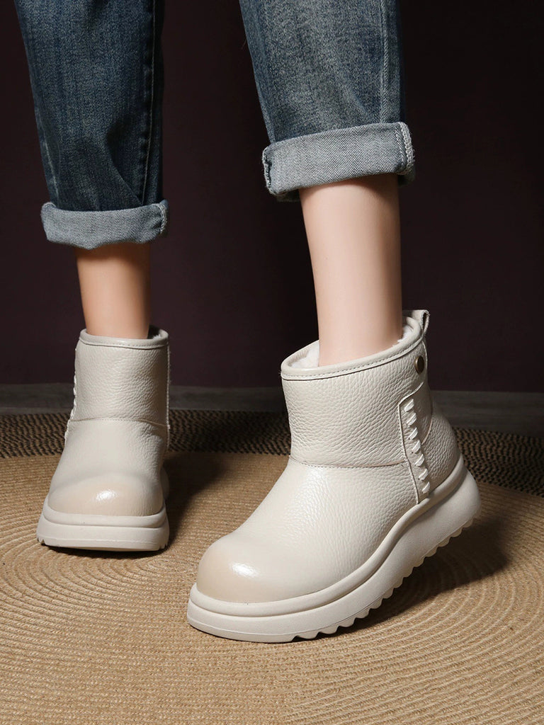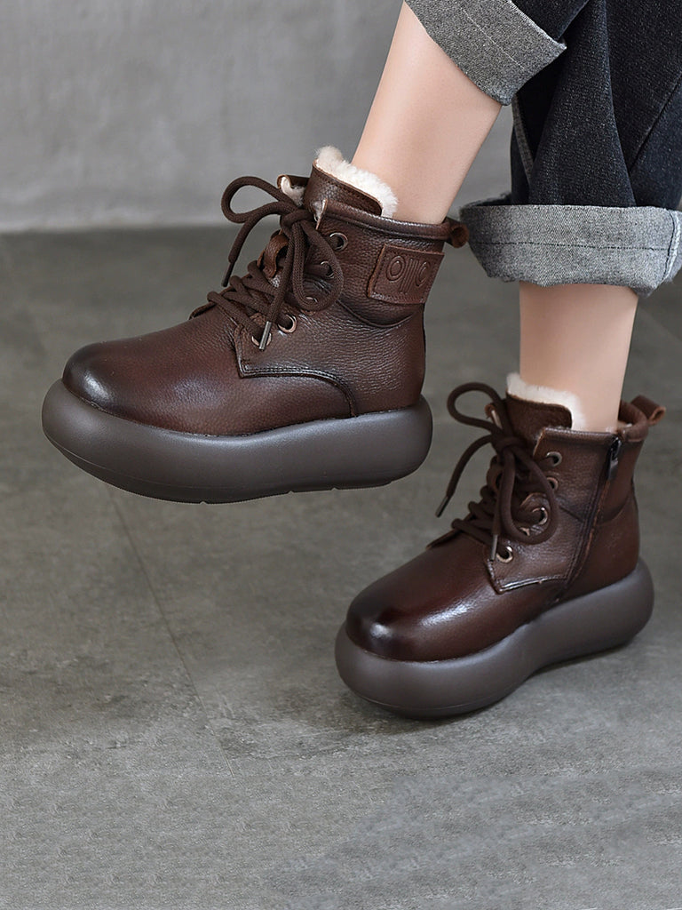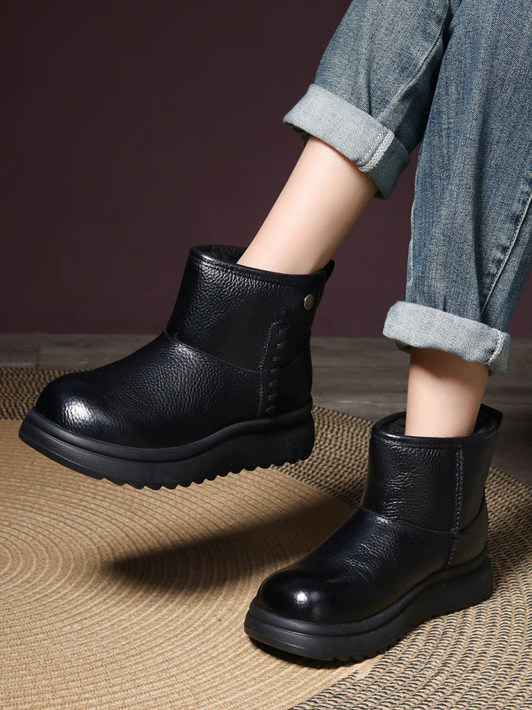 Women Winter Genuine Leather Fleece-lined Platform Boots