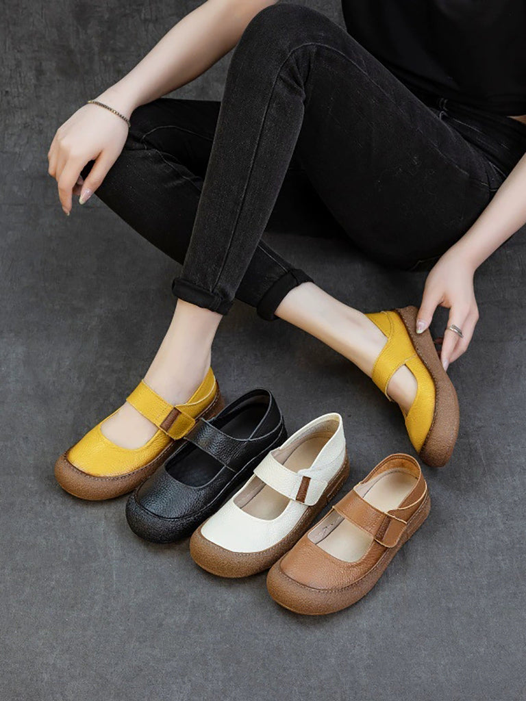 Women Vintage Genuine Leather Strap Flat Shoes