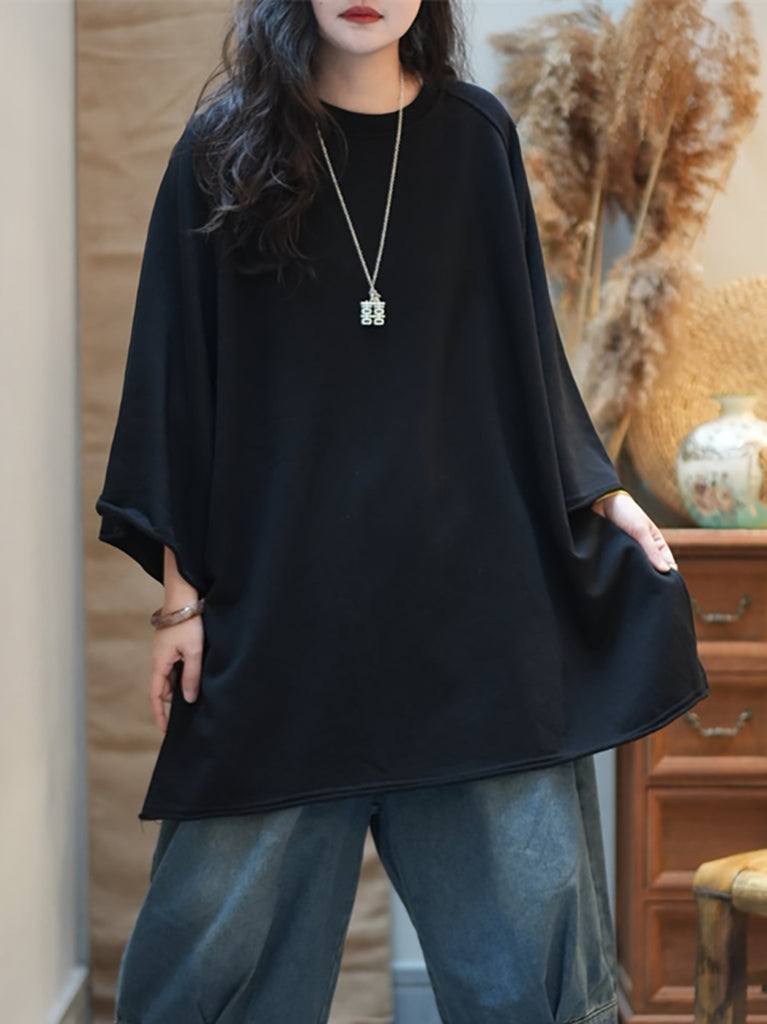 Women Retro Autumn Pure Color 100%Cotton Hoodie