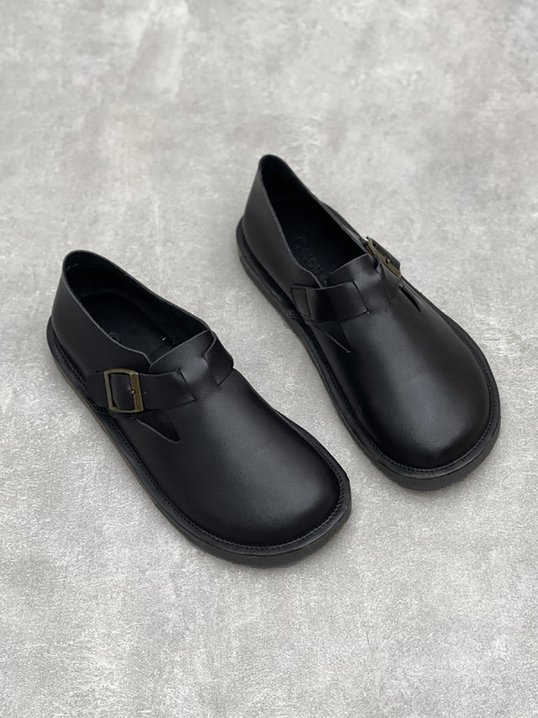 Women Vintage Genuine Leather Spliced Low Heel Shoes