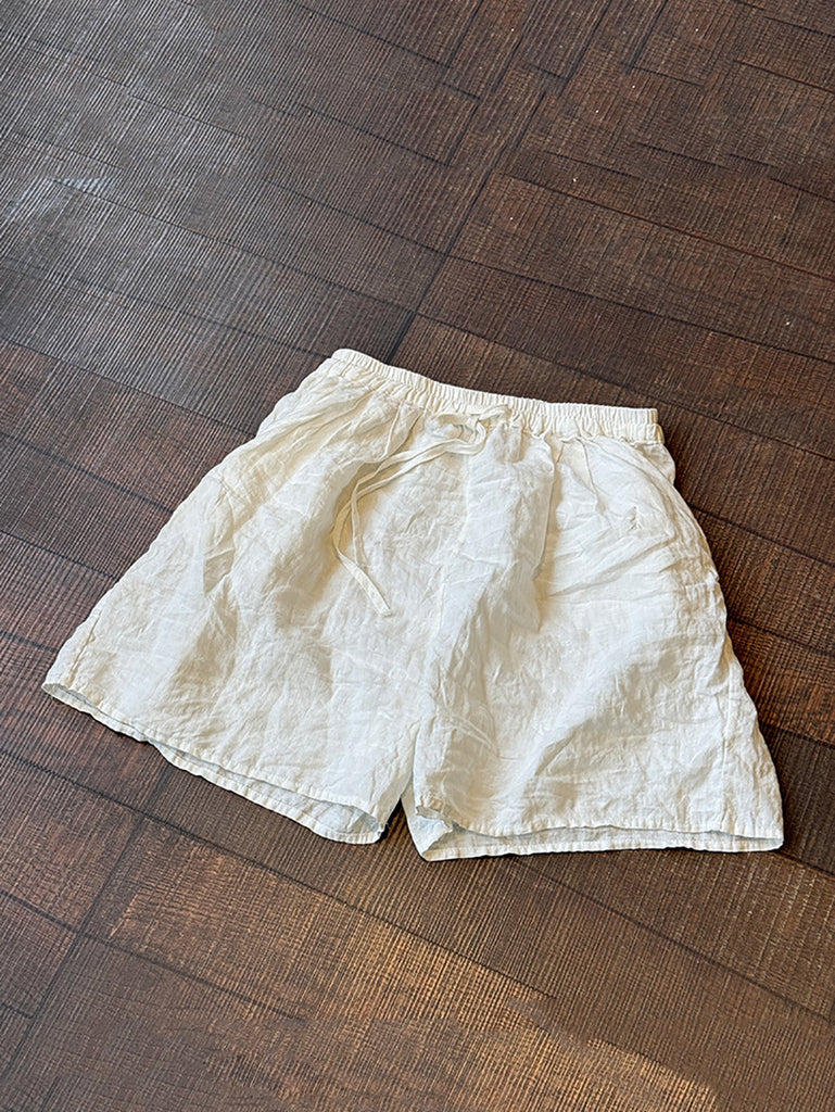 Women Summer Vintage Pure Color Linen Fifth Pants
