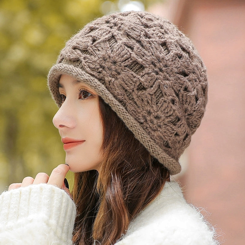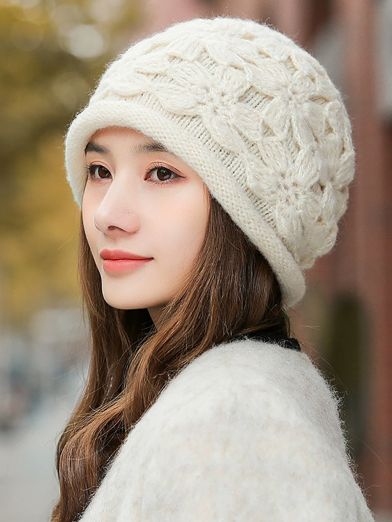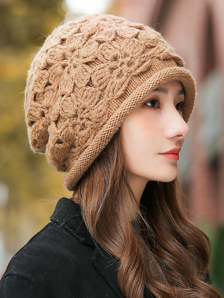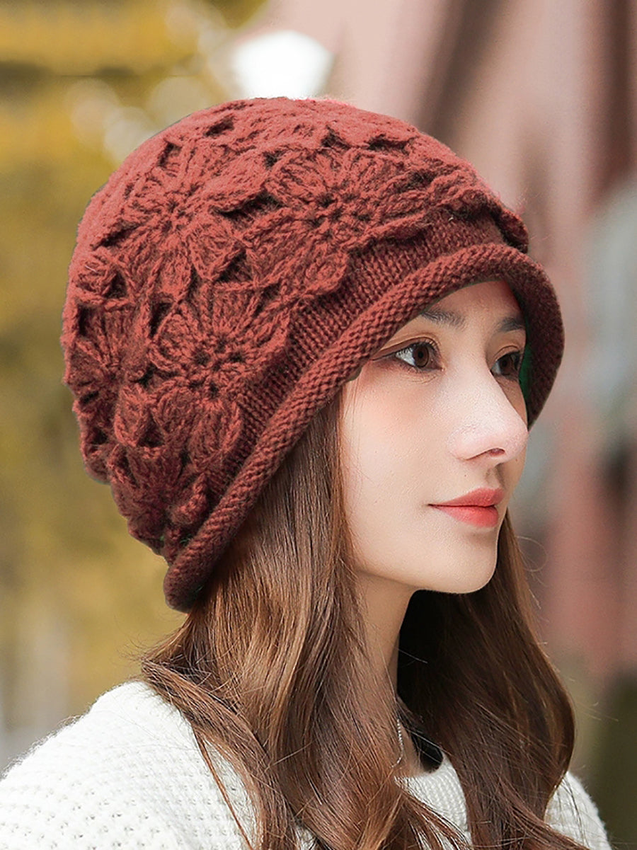 Women Artsy Winter Flower Knitted Hat