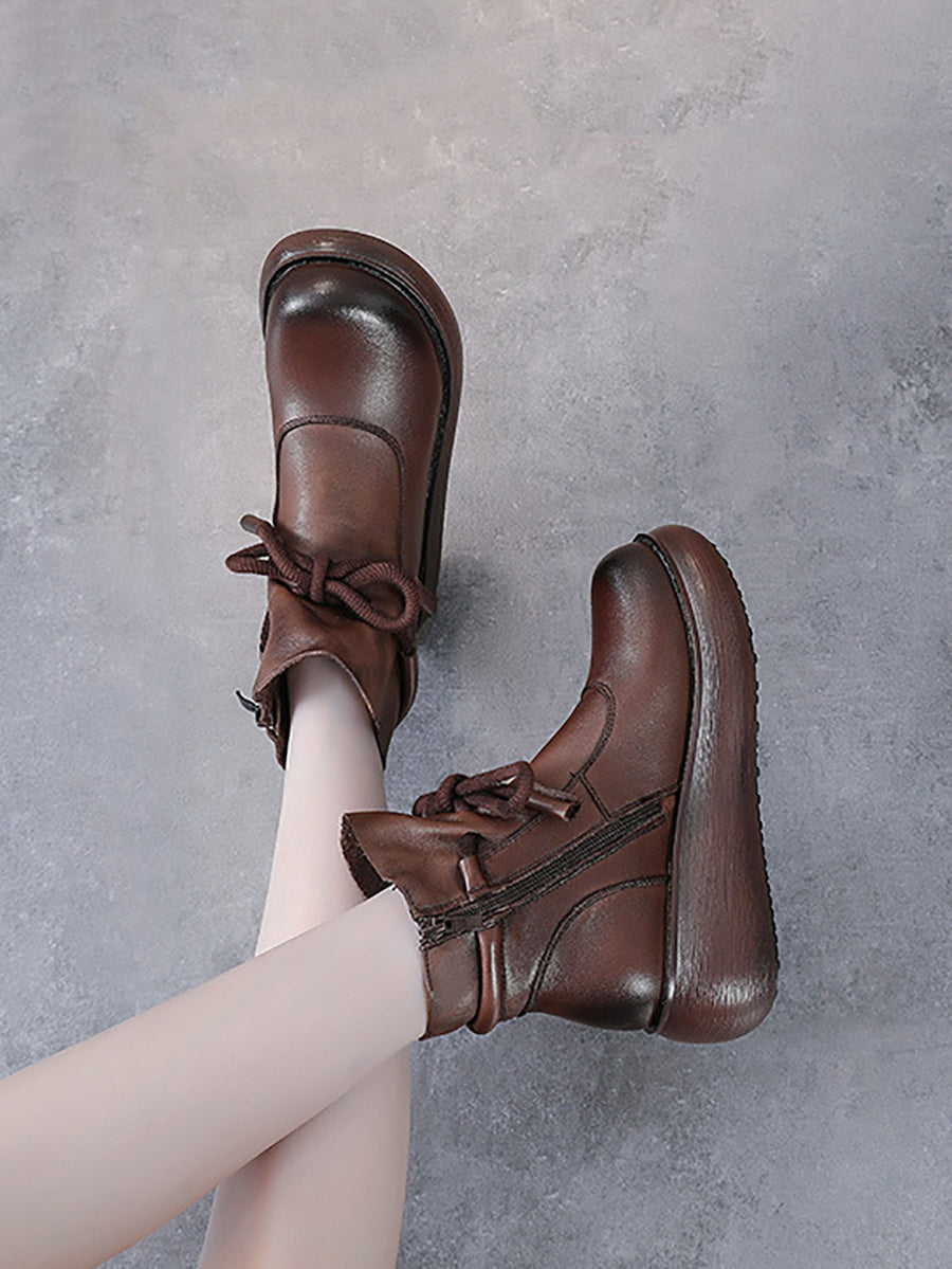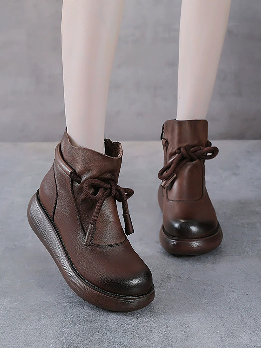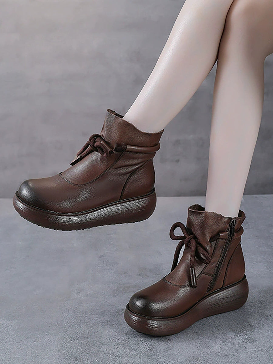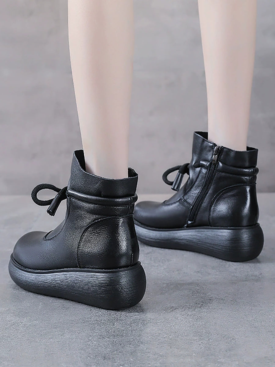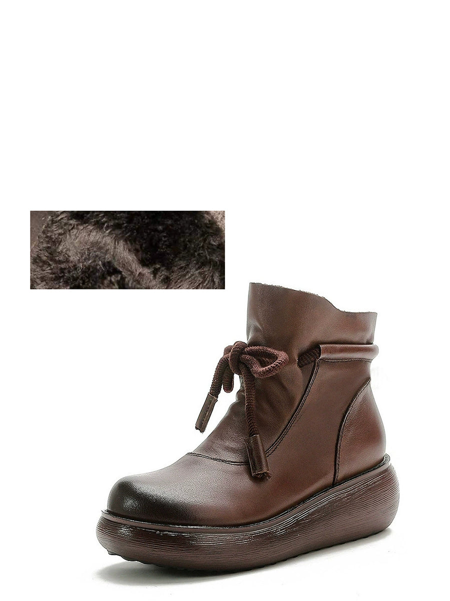 Women Winter Genuine Leather Ankle Platform Boots