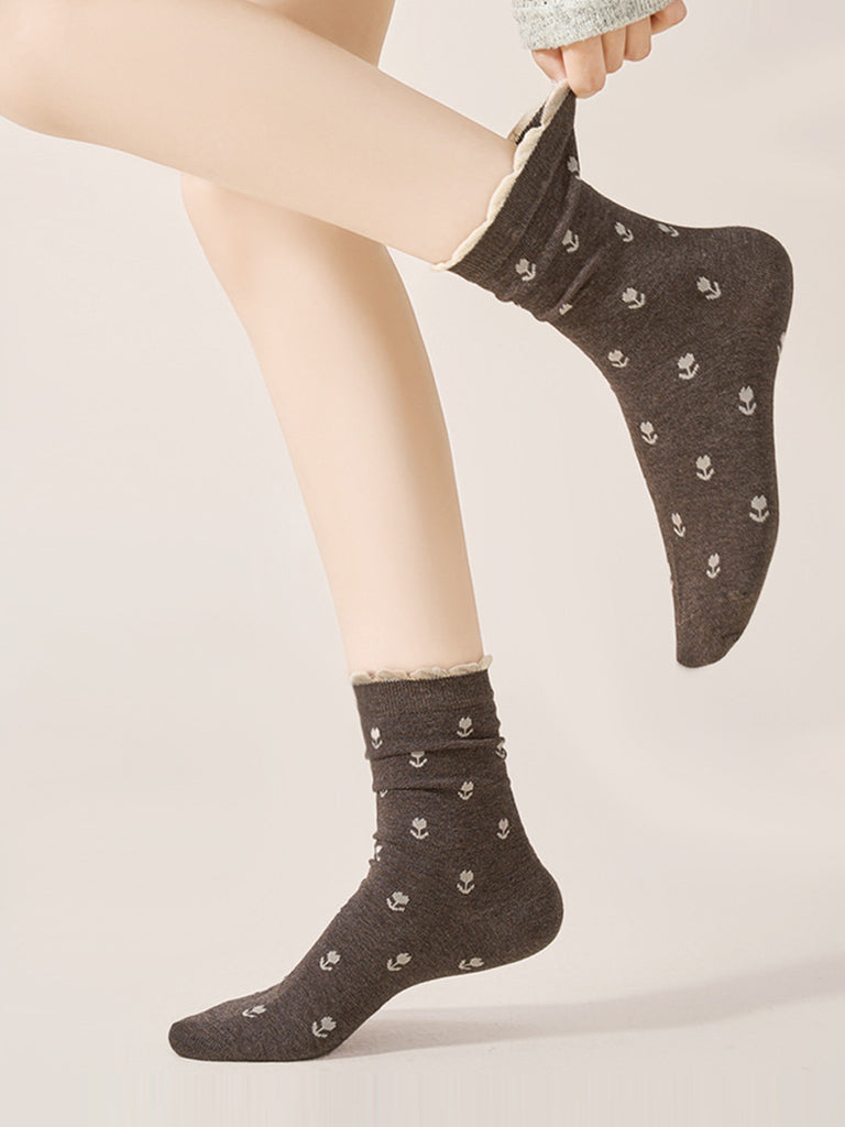 5 Pairs Women Autumn Artsy Floral Jacquard Socks