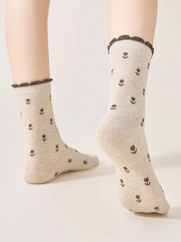 5 Pairs Women Artsy Flower Jacquard Cotton Socks