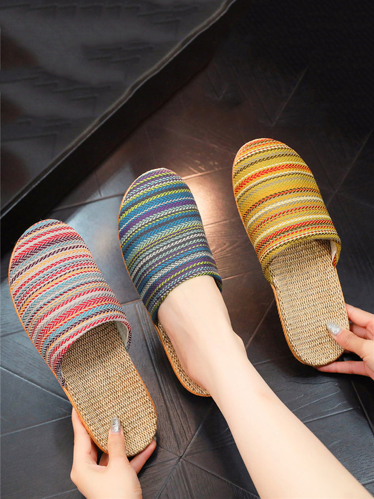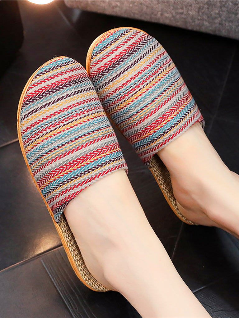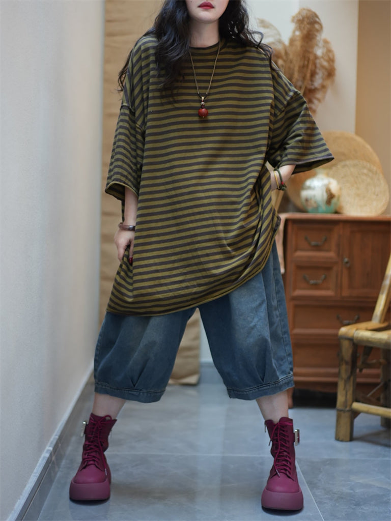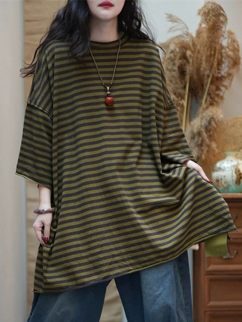 Women Autumn Artsy Stripe Knitted O-Neck Sweater